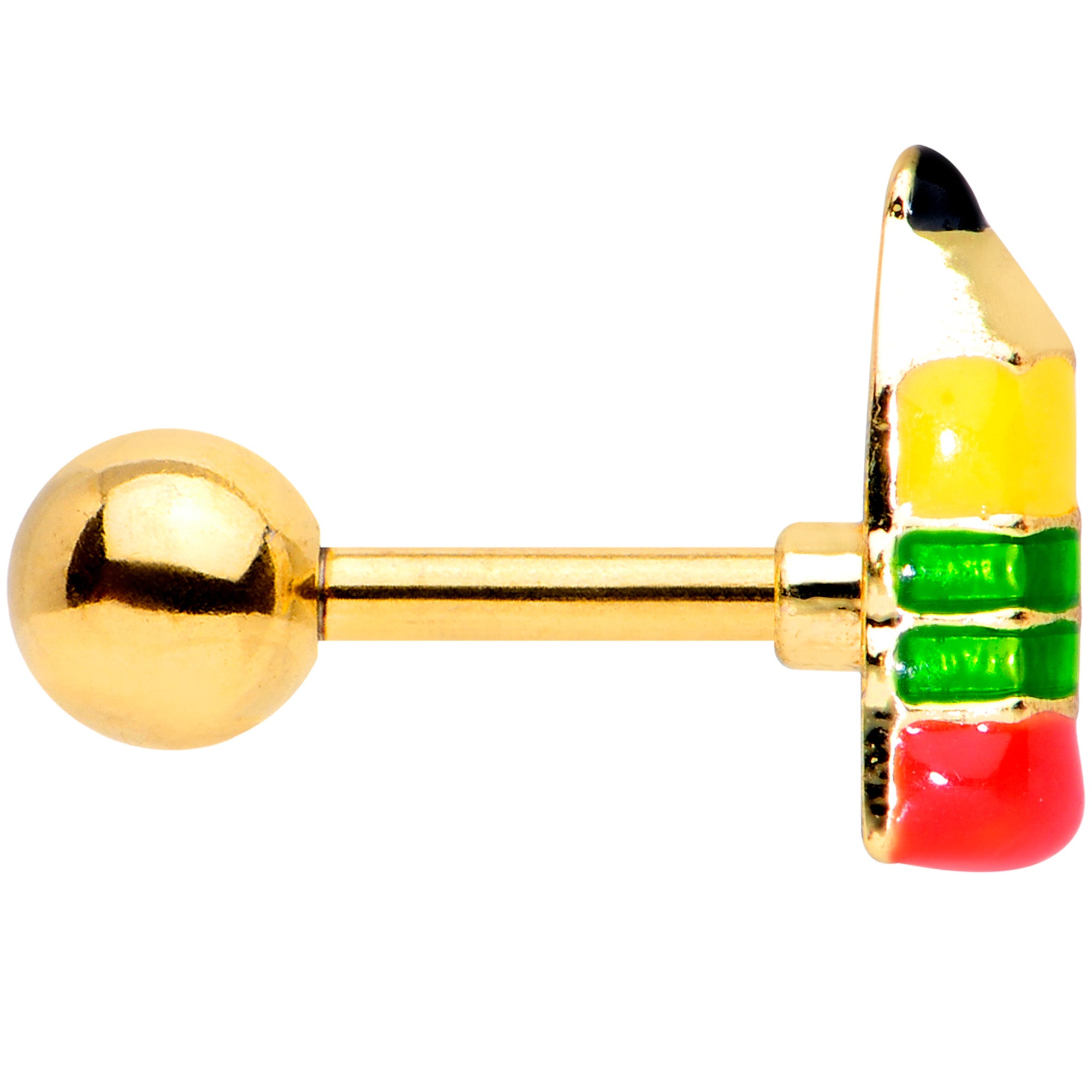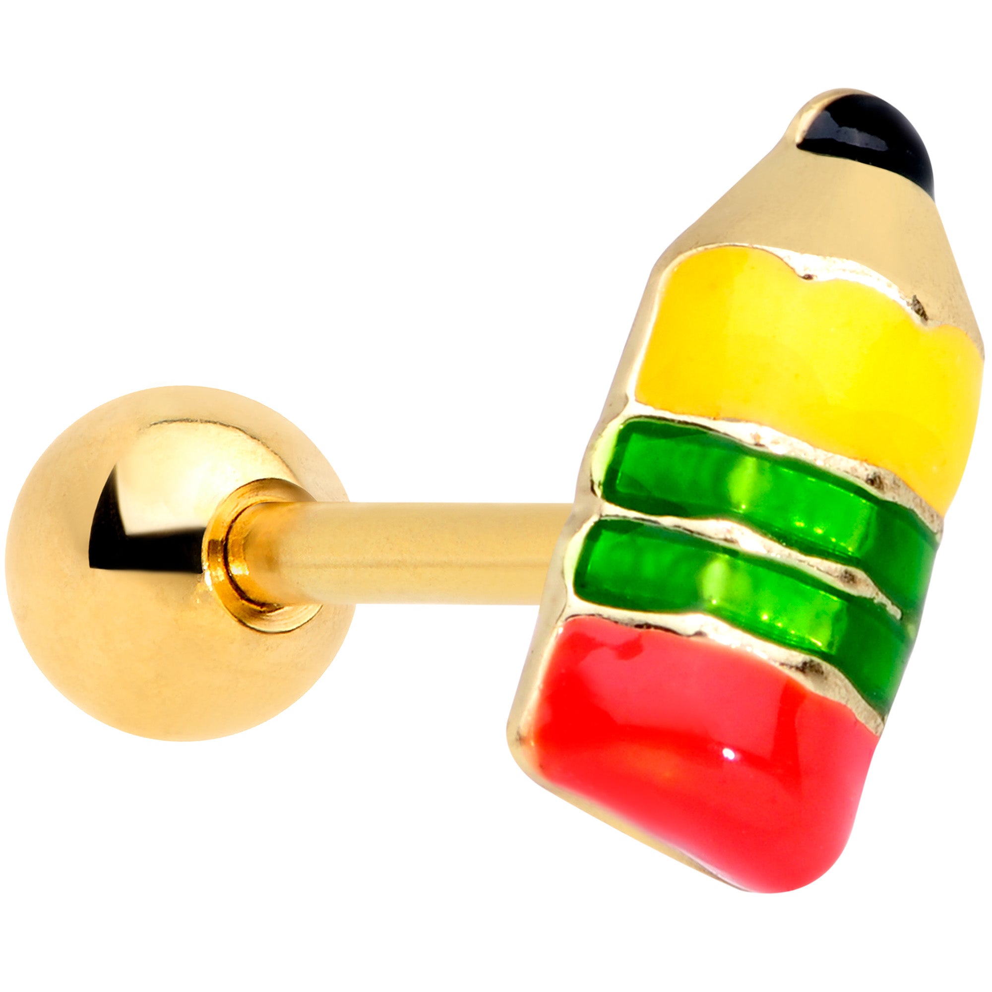 16 Gauge 1/4 Gold Tone Get to Work Pencil Cartilage Tragus Earring
