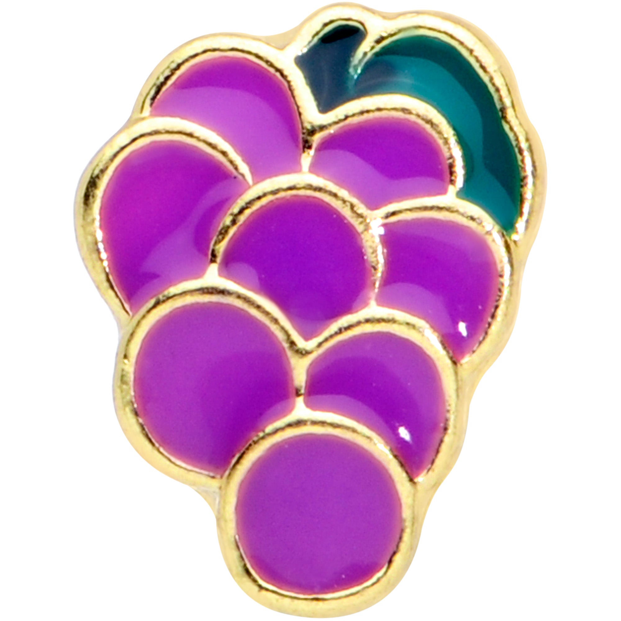 There's nothing to "wine" about when you have this 16 gauge tragus stud in your cartilage piercing! It's made with a 6mm gold tone PVD over 316L surgical grade stainless steel straight barbell with a 4mm ball end. It features a purple bunch of grapes charm with green leaves. And you can wear this cartilage stud in multiple piercings including tragus, helix, and some conch piercings. You'll want to grab these grapes and never let go!