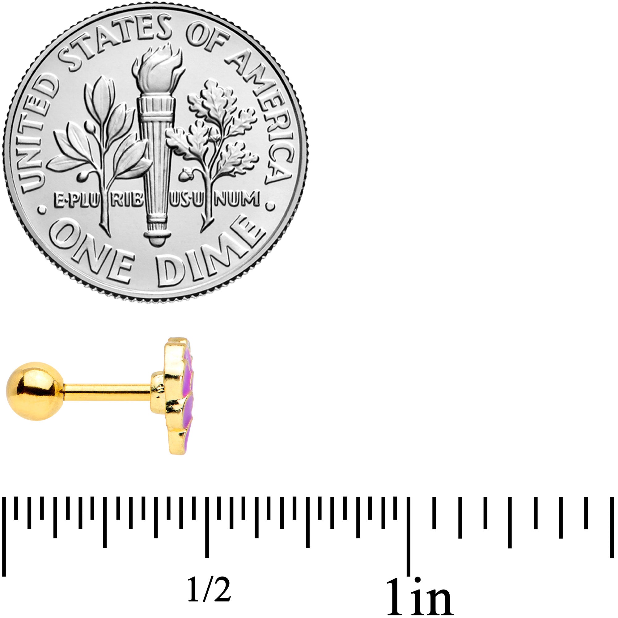 16 Gauge 1/4 Gold Tone Sweet Purple Grapes Cartilage Tragus Earring