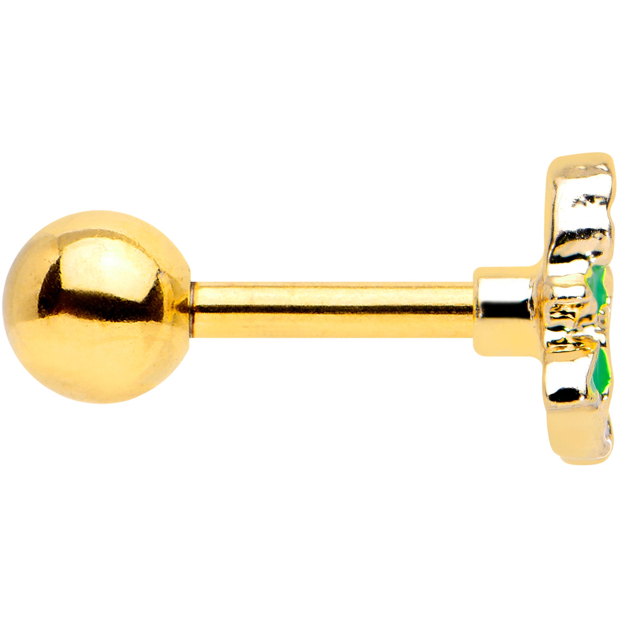 You'll feel absolutely floral with this elegant flower 16 gauge cartilage stud! It's made with a 6mm gold tone PVD over 316L surgical grade stainless steel straight barbell with a 4mm end. It features a white flower charm that screams spring. It's embellished with green leaves for an added touch of realism. You can even flaunt this flower in multiple piercings including tragus, helix, and some conch piercings. Between the luscious color contrast and splashy styling, this flower is sure to make an impression!