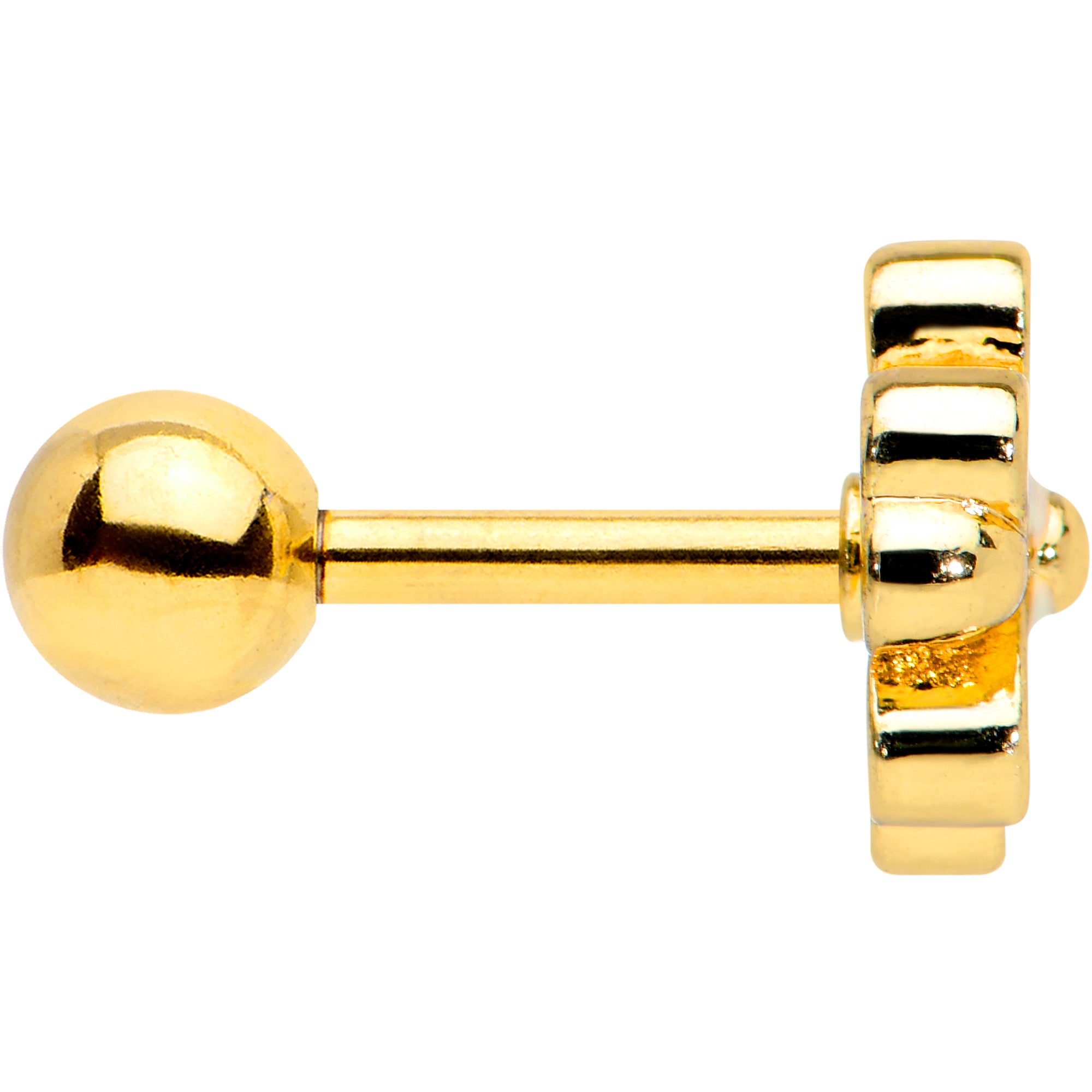 Add a floral touch to your look with this 16 gauge cartilage stud! It's made with a 6mm gold tone PVD over 316L surgical grade stainless steel straight barbell with a 4mm ball end. It features a white daisy charm with textured detailing. It's further embellished with raised detailing for added style. You can even flaunt this flower in multiple piercings including tragus, helix, and some conch piercings. Let the flowers bloom with this fabulous, floral tragus piercing ring!