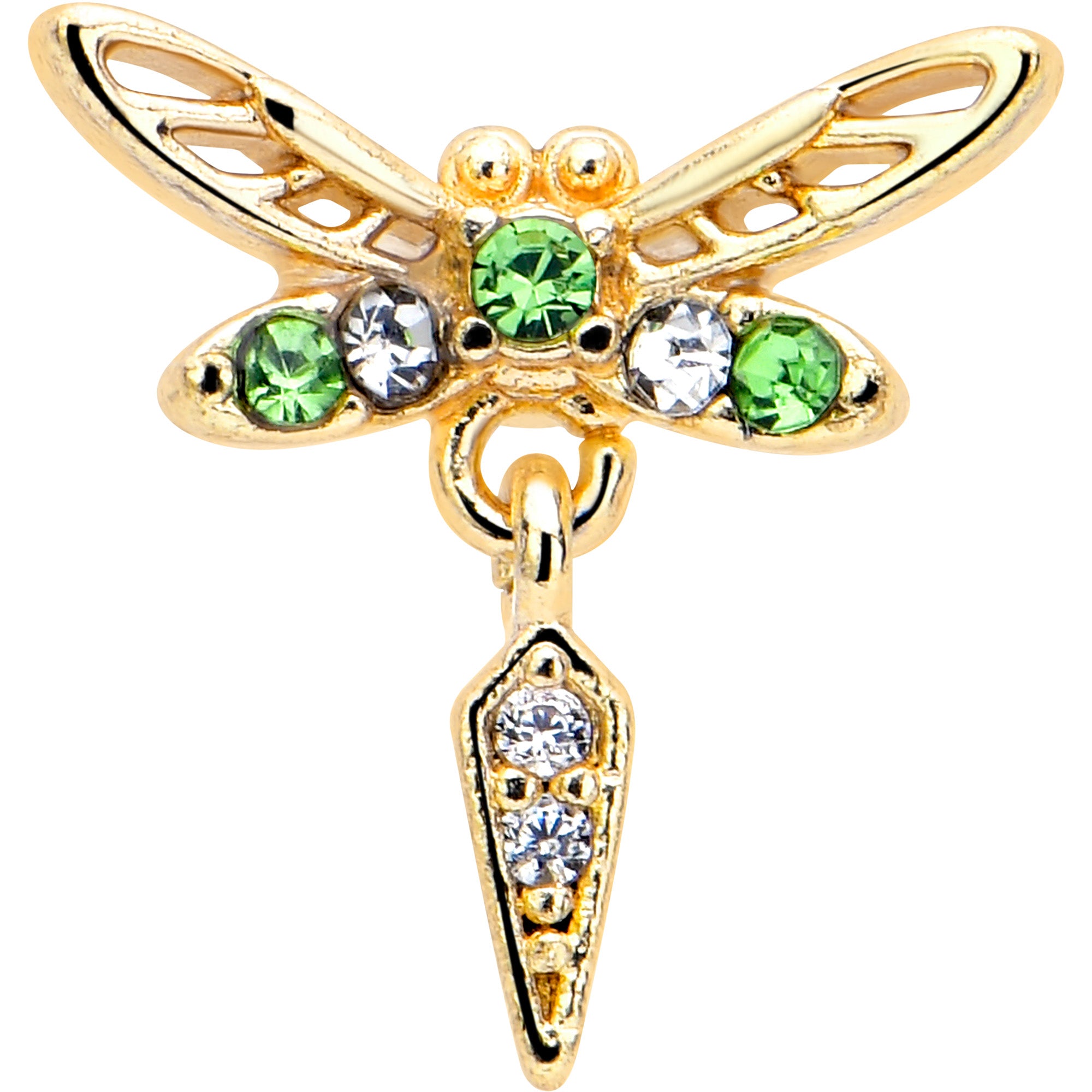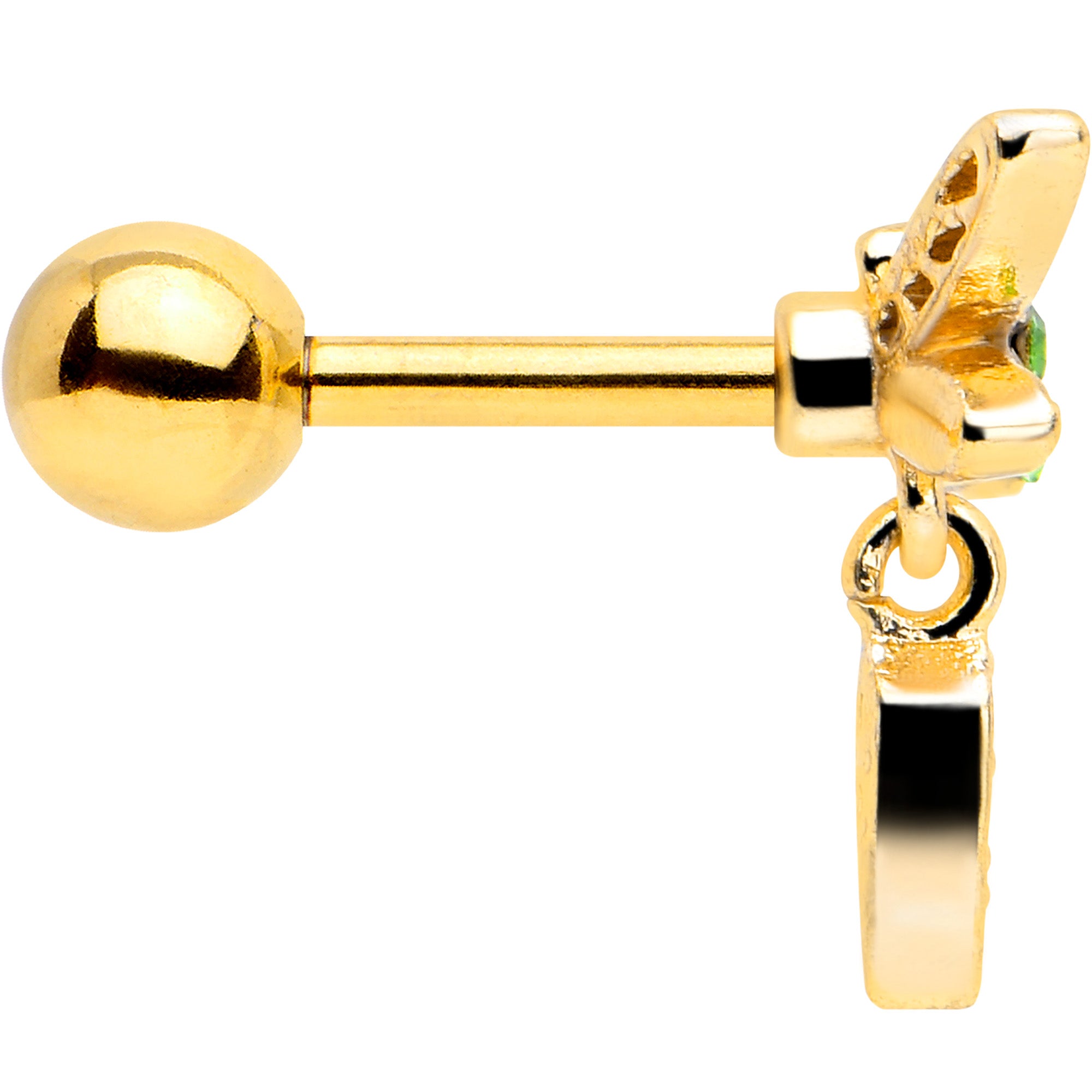 16G 1/4 Green Gem Gold Tone Swank Dragonfly Dangle Cartilage Earring