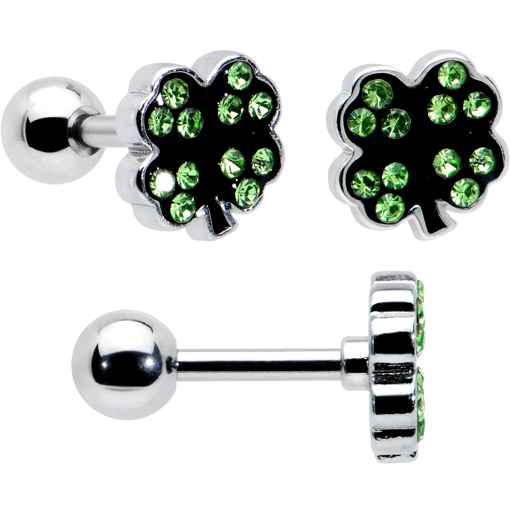 16 Gauge 1/4 Green Gem Shamrock Pot of Gold Cartilage Earring Set of 3