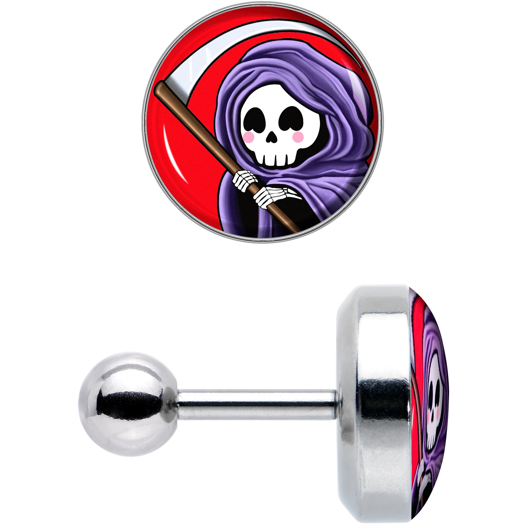 Hypoallergenic jewelry for sensitive skin.16 Gauge 1/4 Grim Reaper Cartilage Tragus Earring