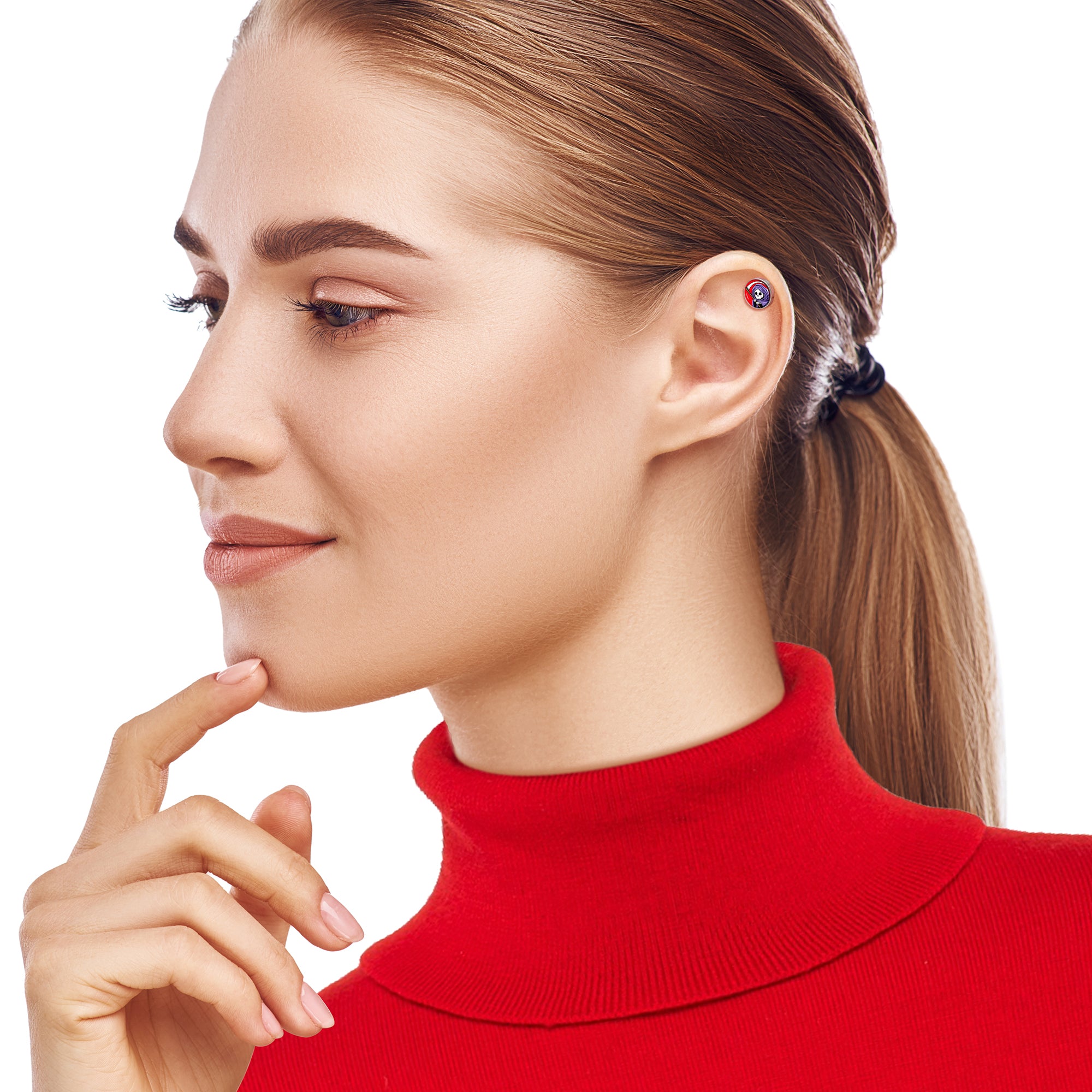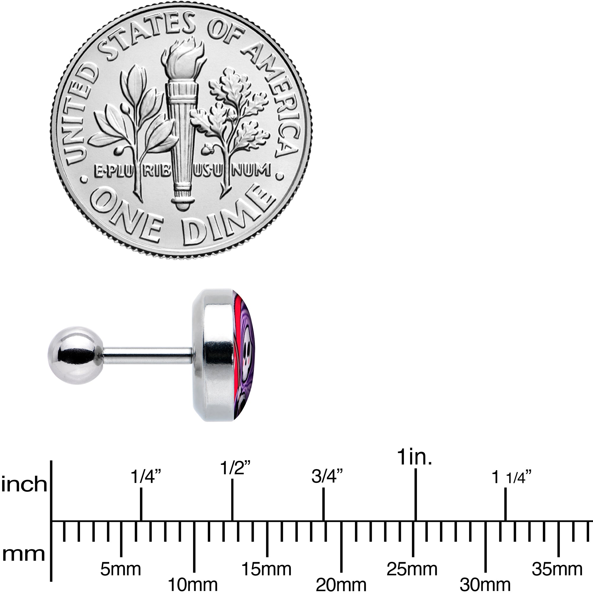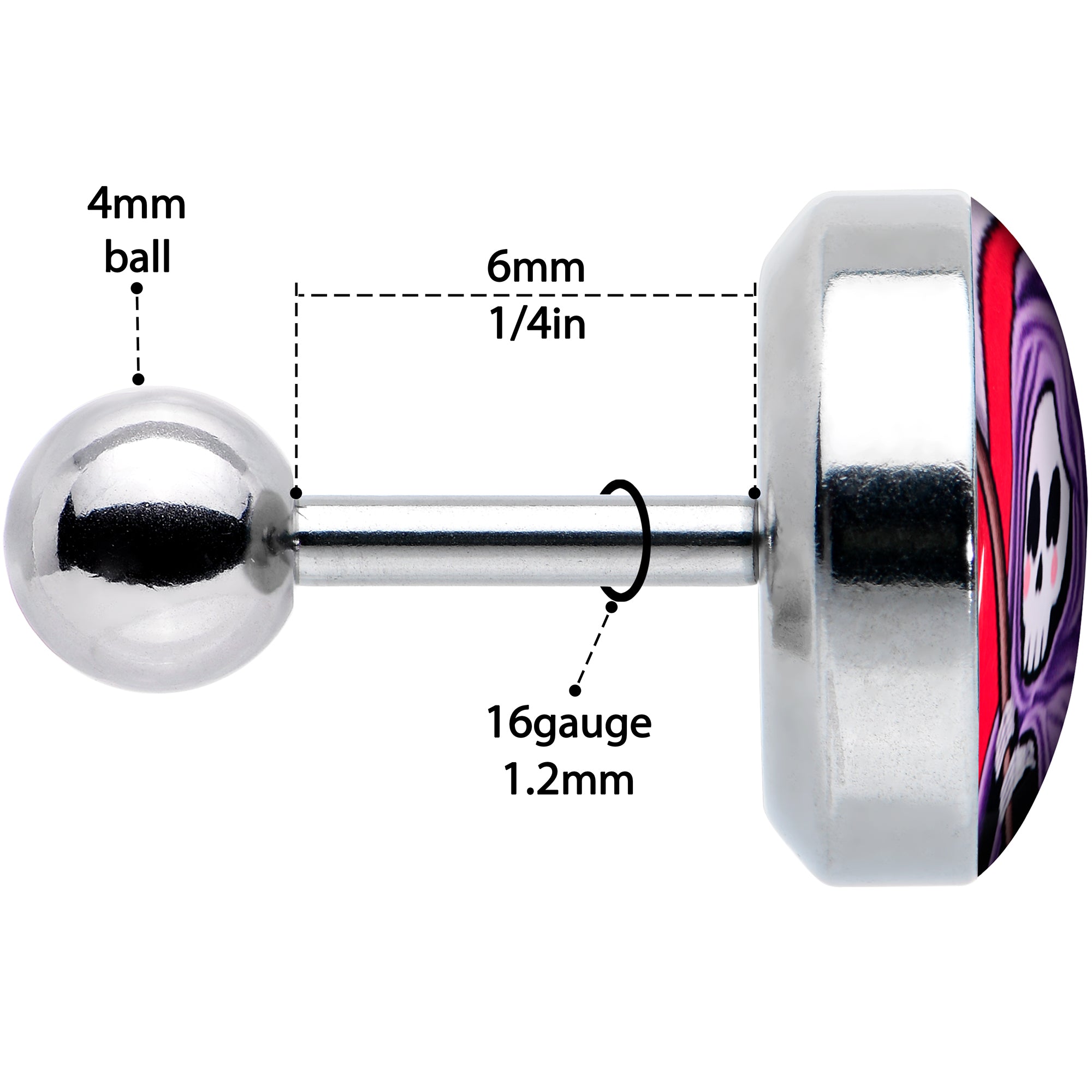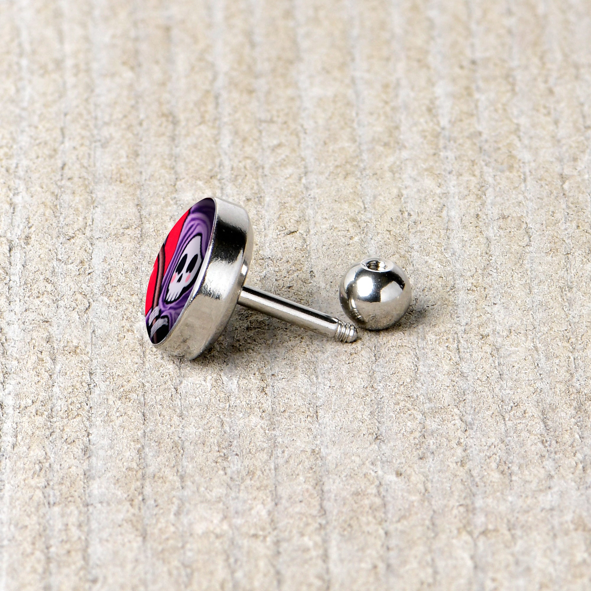 Death to boring belly jewelry - when you're rocking this 16 gauge tragus stud! It's made with a 6mm durable 316L surgical grade stainless steel straight barbell with a 4mm ball end. It features a disc shaped grim reaper charm with a vivid red background. The fantasy-styled grim reaper has a purple cloak and curving scythe for a traditional twist and you can rock it in multiple piercings including tragus, helix, and some conch piercings. If you're dying for a new look, this colorful cartilage piercing ring is exactly what you're after!