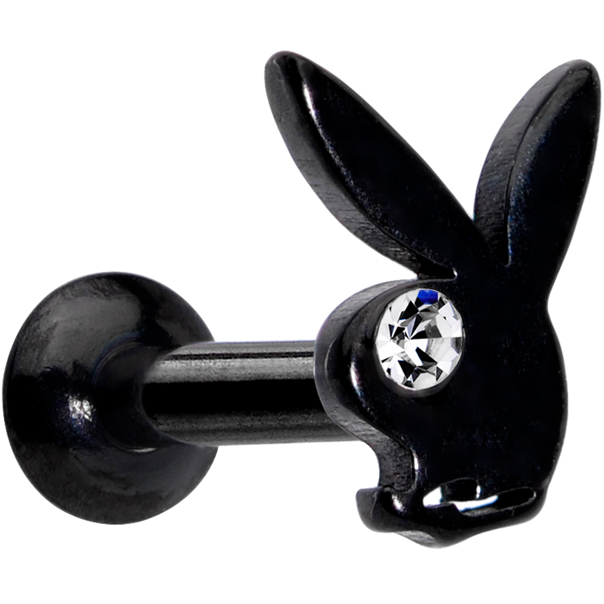 Slide that 16 gauge cartilage jewelry into your piercing....it's made with a 6mm black PVD over 316L surgical grade stainless steel straight barbell with a flat disc end. The top end is internally threaded to make sure you feel nothing but comfort while inserting it into your...ear. The top end features an officially licensed Playboy Bunny charm with a clear cubic zirconia gem eye. It has a look that combines "naughty" with "nice" with a dash of sexy playfulness. You can rock this bunny in multiple holes including tragus, helix, and some conch piercings. Put some Playboy in your ear and let your cartilage piercings look as stylish and sexy as the rest of you!