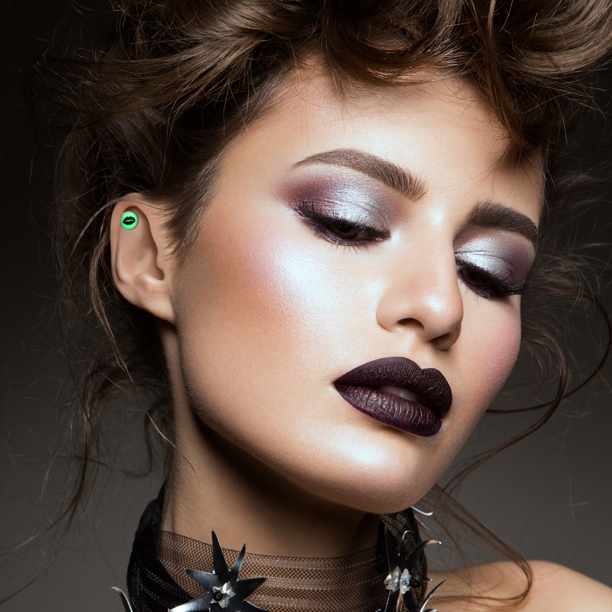 Hypoallergenic jewelry for sensitive skin.16 Gauge 1/4 Lipstick Kiss Black Glow in the Dark Cartilage Earring