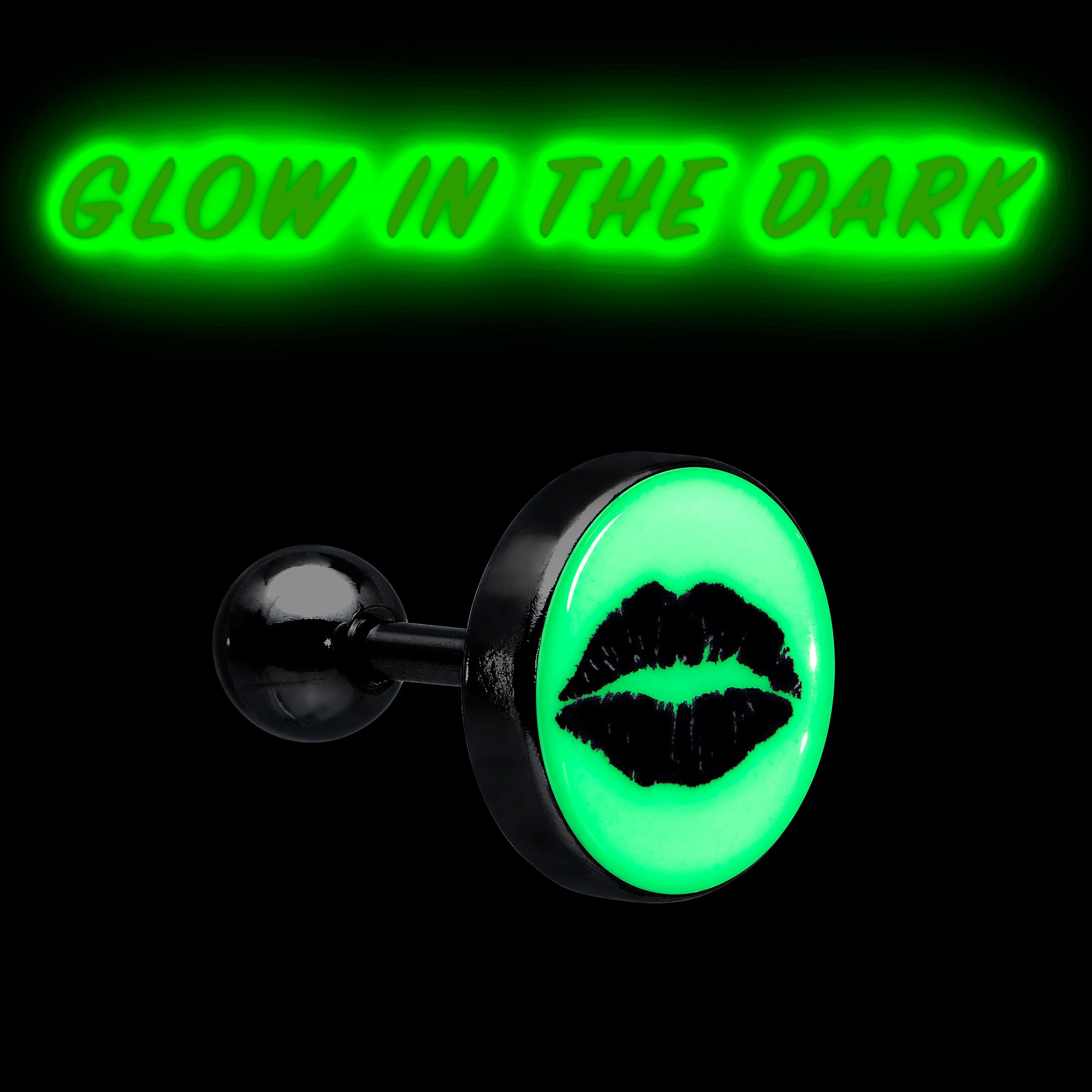 16G 1/4 Lipstick Kiss Black Glow in the Dark Cartilage Earring by Onyx O