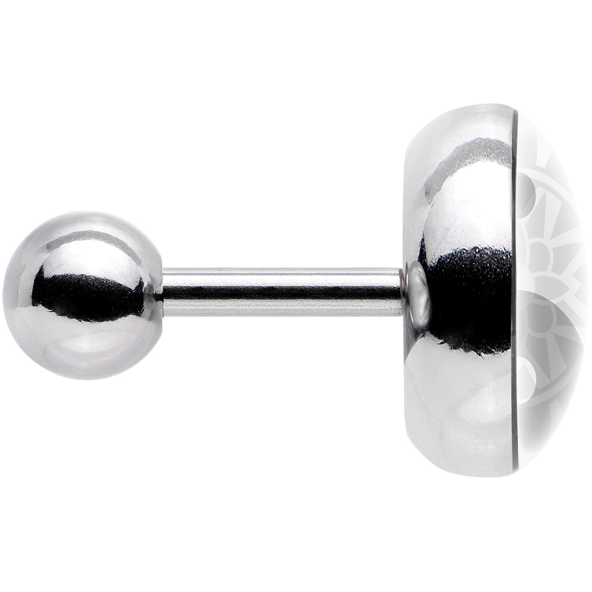 If you love to live in balance with the universe then this cartilage jewelry is right for you! Made with a 6mm durable 316L surgical grade stainless steel straight barbell, this tragus earring features a black and white yin yang printed over a simple black mandala background logo inlay.