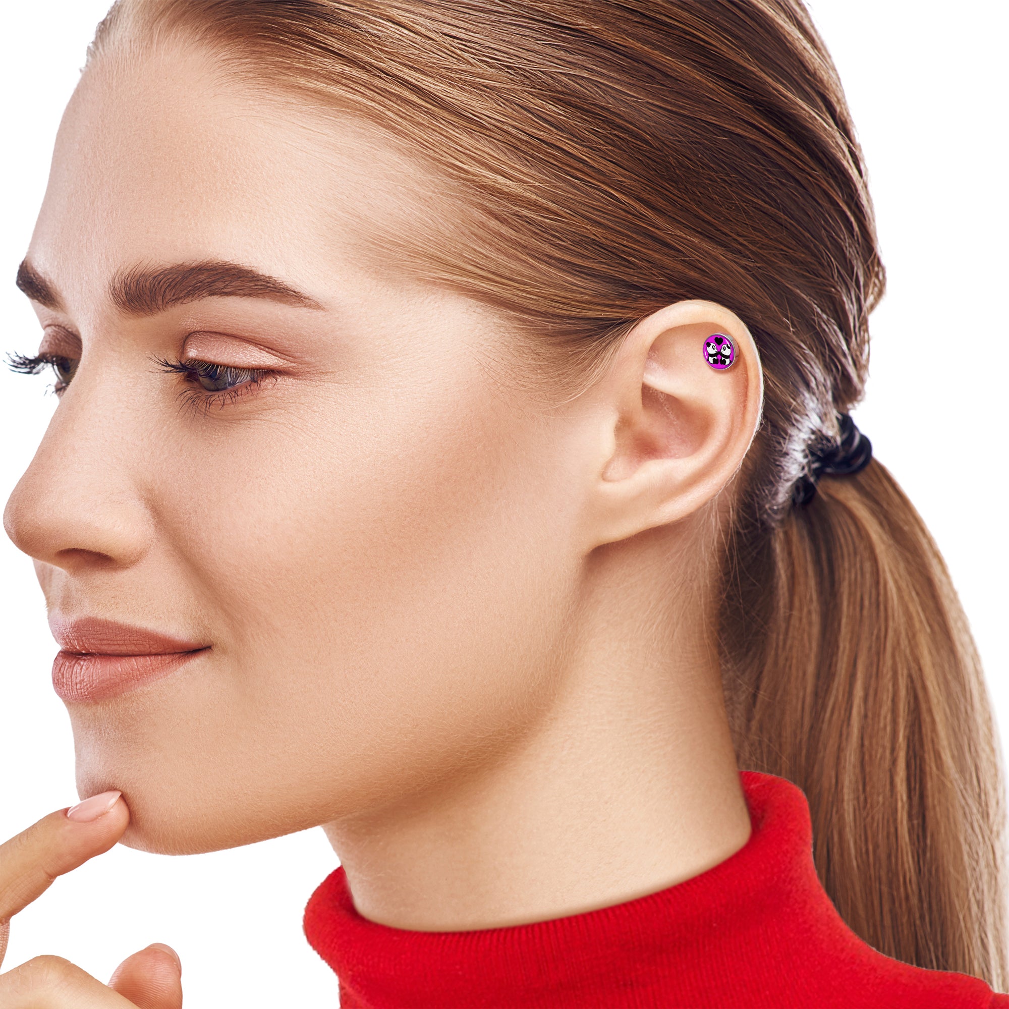 You will fall in love too with the happy panda bears on this 16 gauge tragus stud. It is made with a 6mm durable 316L surgical grade stainless steel straight barbell with a 4mm ball end. The front end features a purple disc charm. It features a pair of pandas, gazing lovingly at each other, with a heart above and between them and you can proudly rock them in multiple piercings including tragus, helix, and some conch piercings. Love is for everyone when it comes to this pleasing panda cartilage piercing ring.