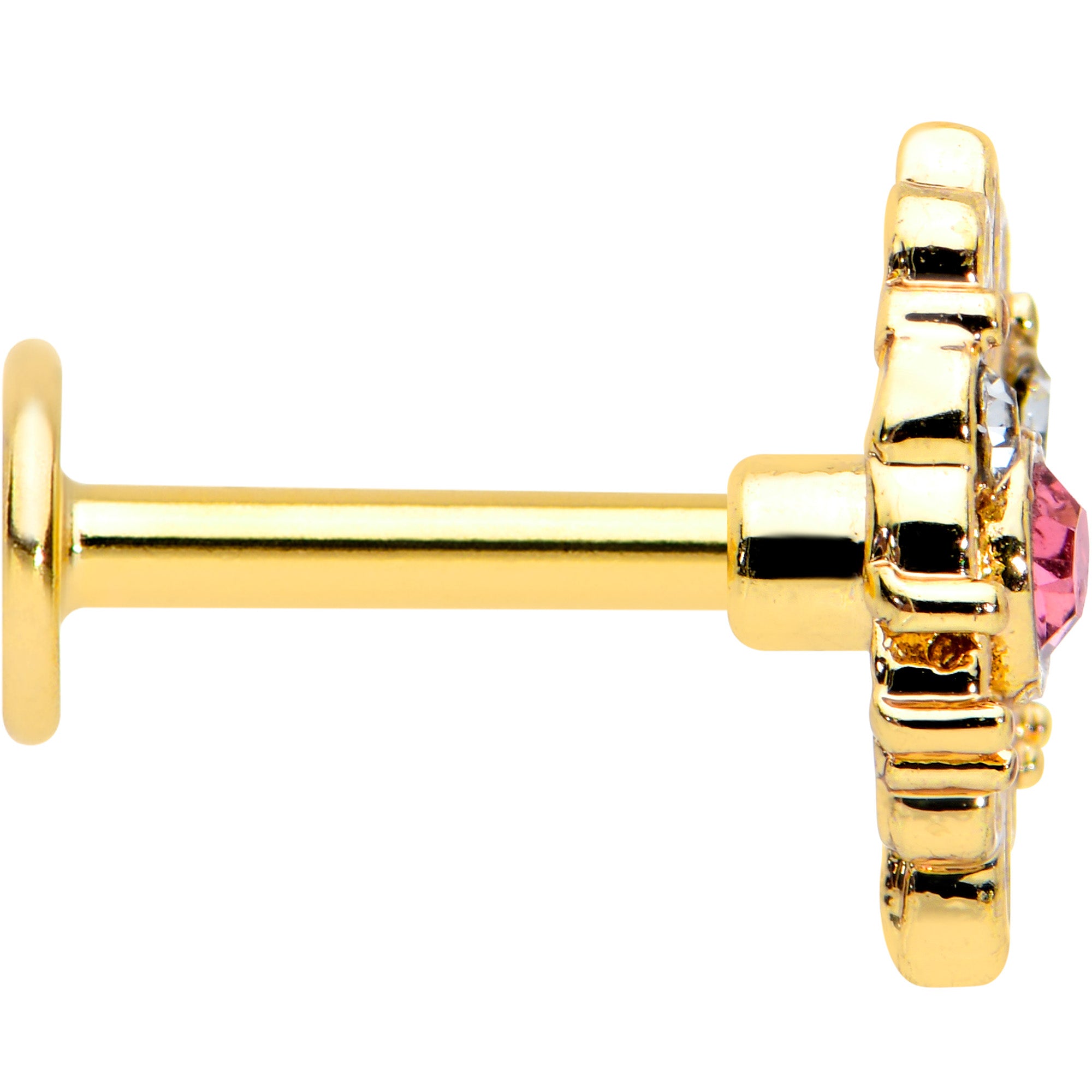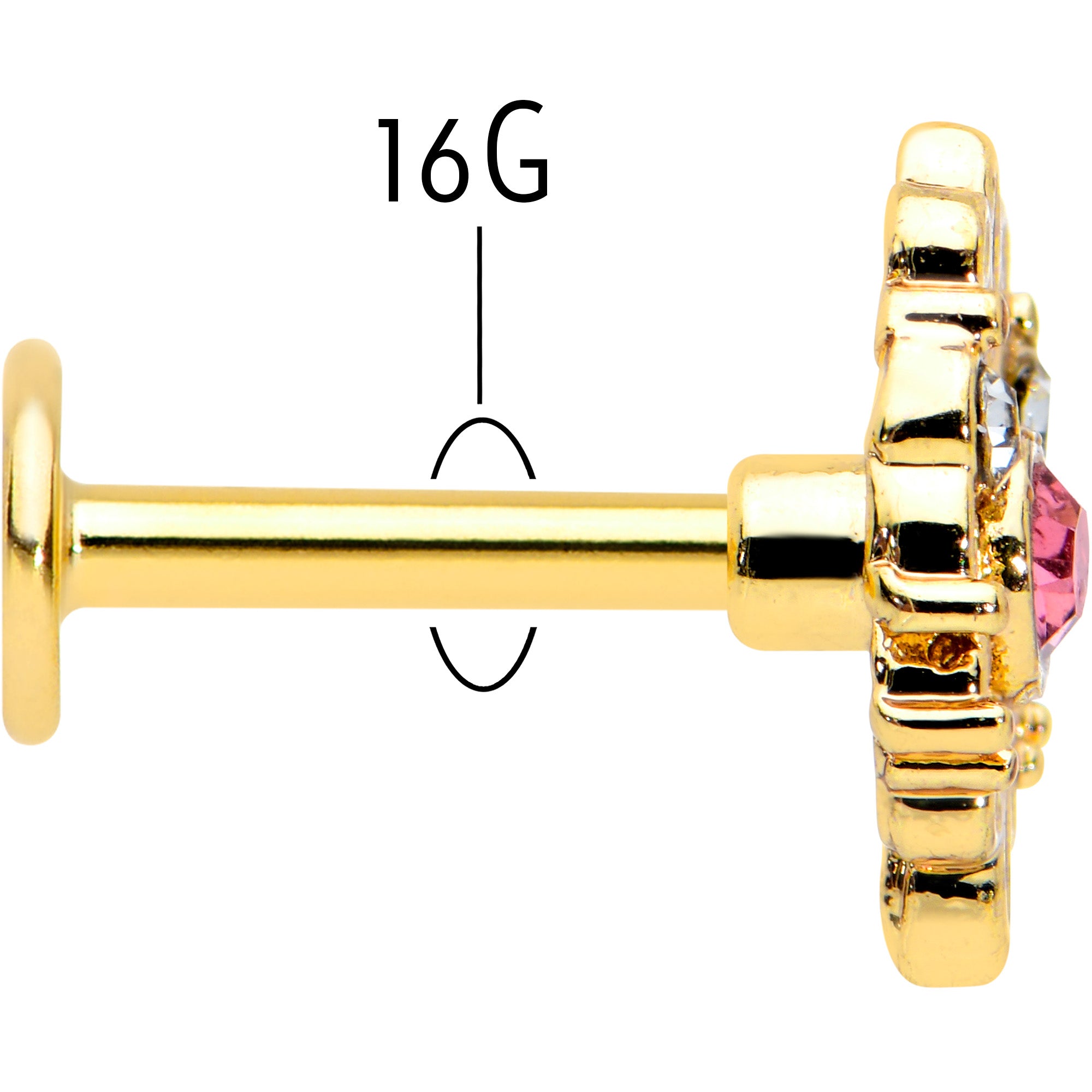 16 Gauge 1/4 Pink Clear Gem Gold Tone Lace Love Labret Monroe Tragus