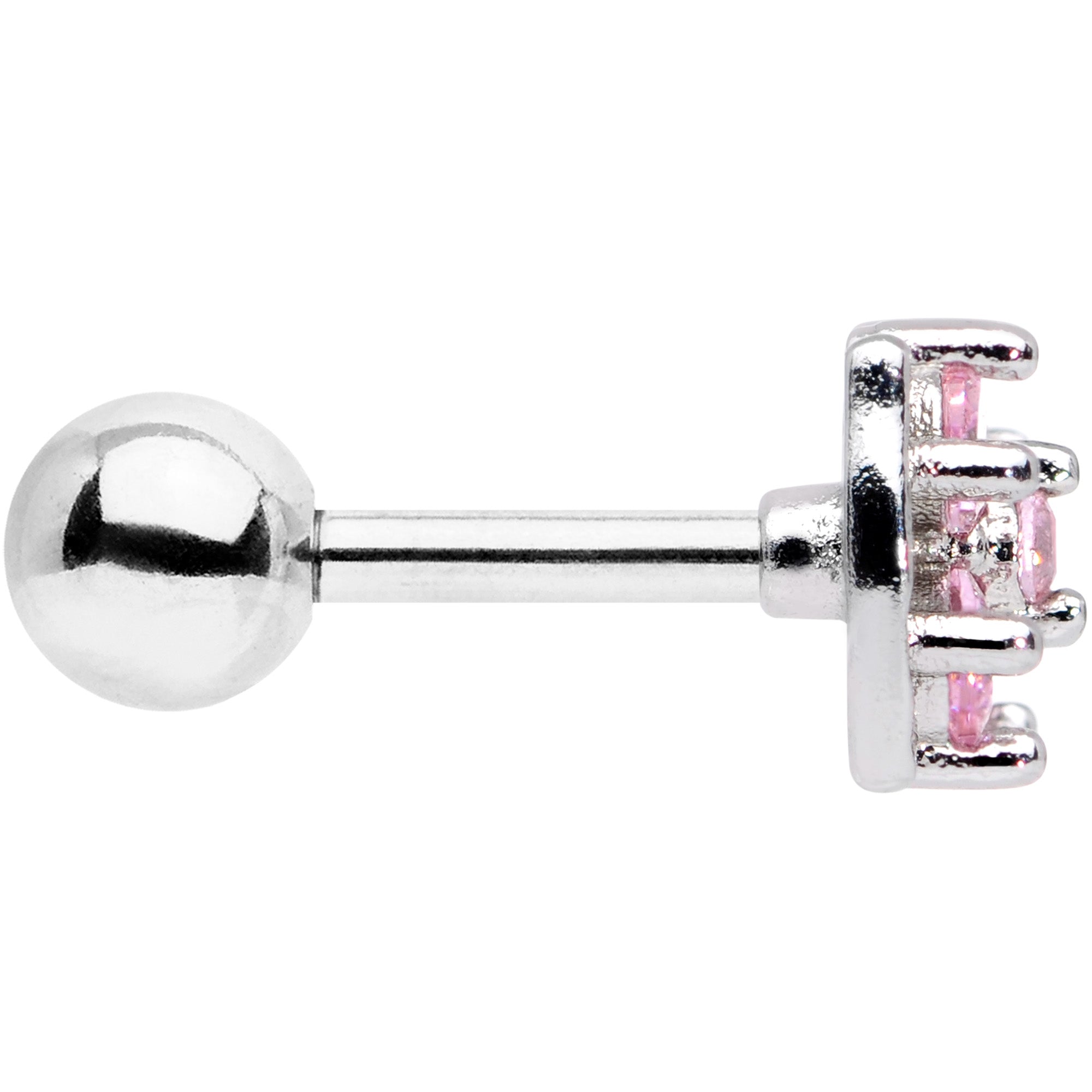 Bows on barbells make them extra beautiful, like on this 16 gauge cartilage stud! It's made with a 6mm durable 316L surgical grade stainless steel straight barbell with a 4mm ball end. It features a bow-shaped charm, set with four pink cubic zirconia gems for an extra luxe appearance. You can even boast this bow in multiple piercings including tragus, helix, and some conch piercings. Your cartilage piercing will be bold and beautiful with this beauty bow tragus stud!