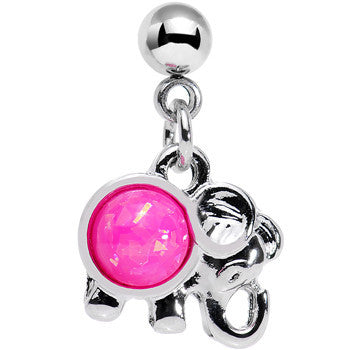Find your luck with a divine sense of style thanks to some help from this 16 gauge dangle tragus cartilage earring. This barbell earring has a straight barbell of 6mm in length, which is made from durable 316L surgical grade stainless steel and supports the dangling design of an adorable elephant charm with a pink faux opal gem set on its belly.