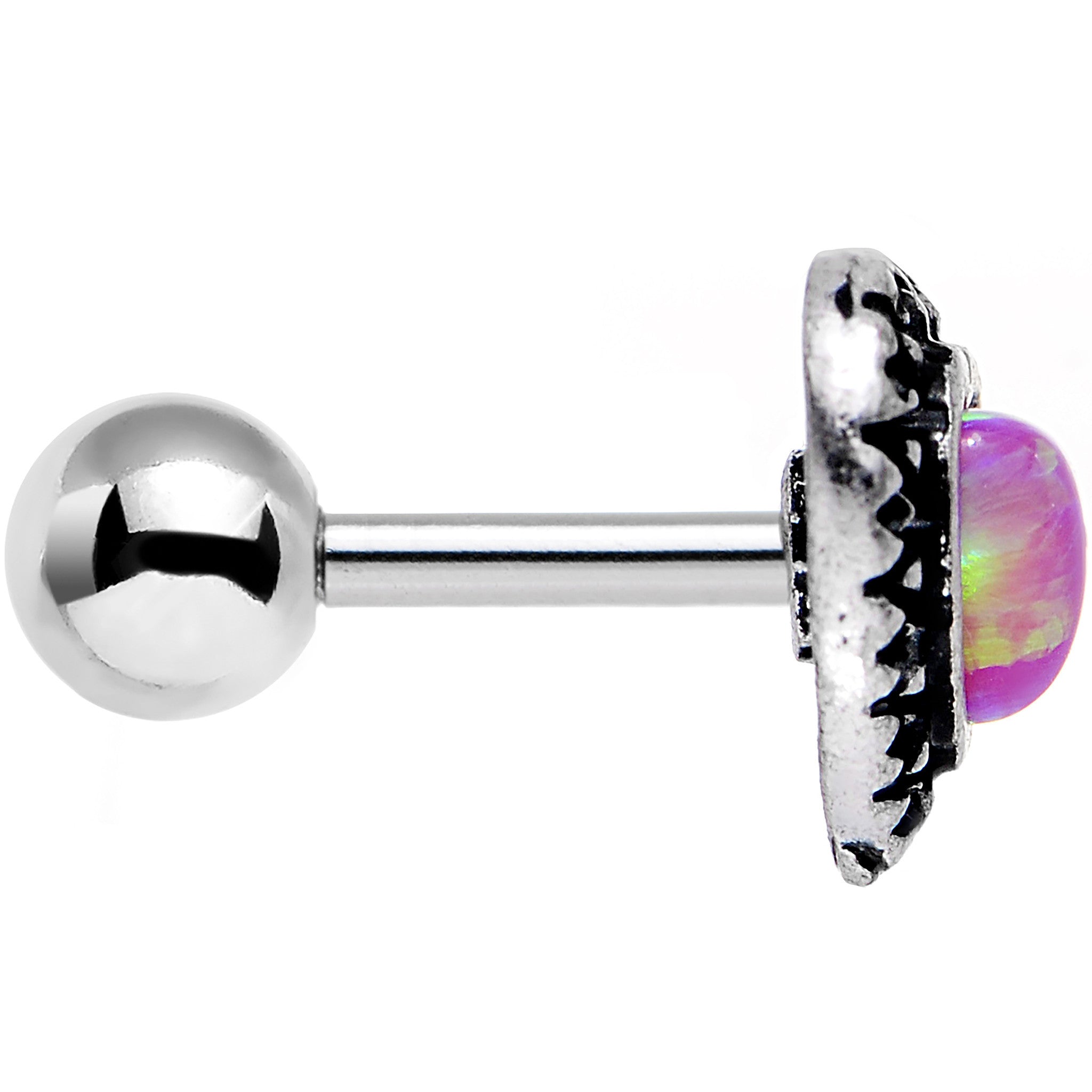 Find your divine style with a loveable design with this 16 gauge tragus cartilage earring with a faux opal heart. The 6mm long straight barbell is made from durable 316L surgical grade stainless steel. The beautiful pink faux opal heart is set within a detailed heart shaped frame for a trendy and powerful fashion statement.