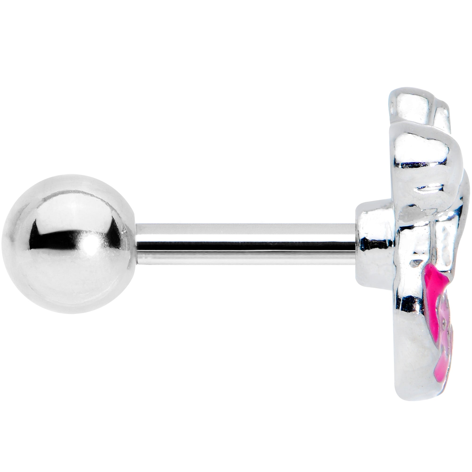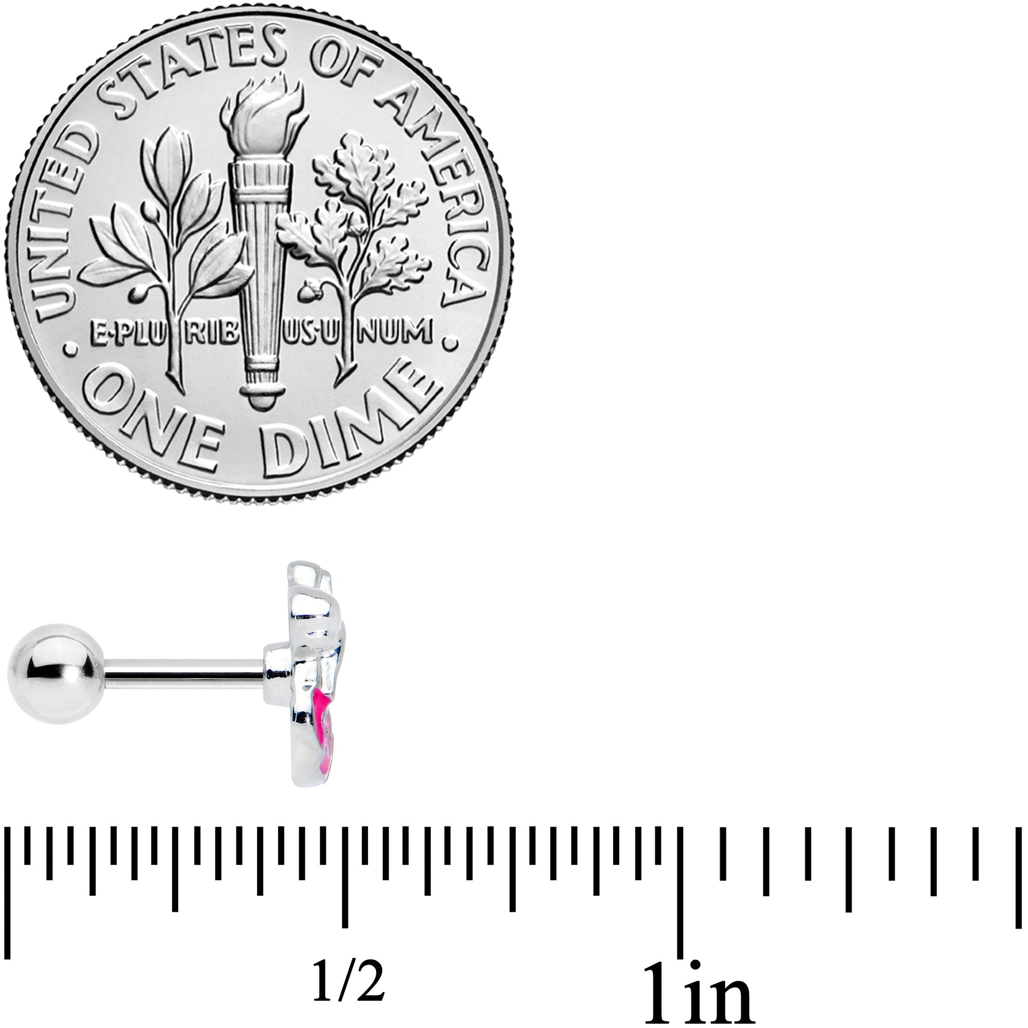 The Easter Bunny on this 16 gauge cartilage stud may have taken on more than it can handle! It's made with a 6mm durable 316L surgical grade stainless steel straight barbell with a 4mm ball end. It features an Easter Bunny charm with a pink gem eye. The bunny is sitting on an Easter Egg, which is inlaid in pink and features a floral pattern. And this bunny can make multiple piercings more festive, including tragus, helix, and some conch piercings! The egg may be too big for the bunny to deliver but this tragus stud is perfect for your cartilage piercing!