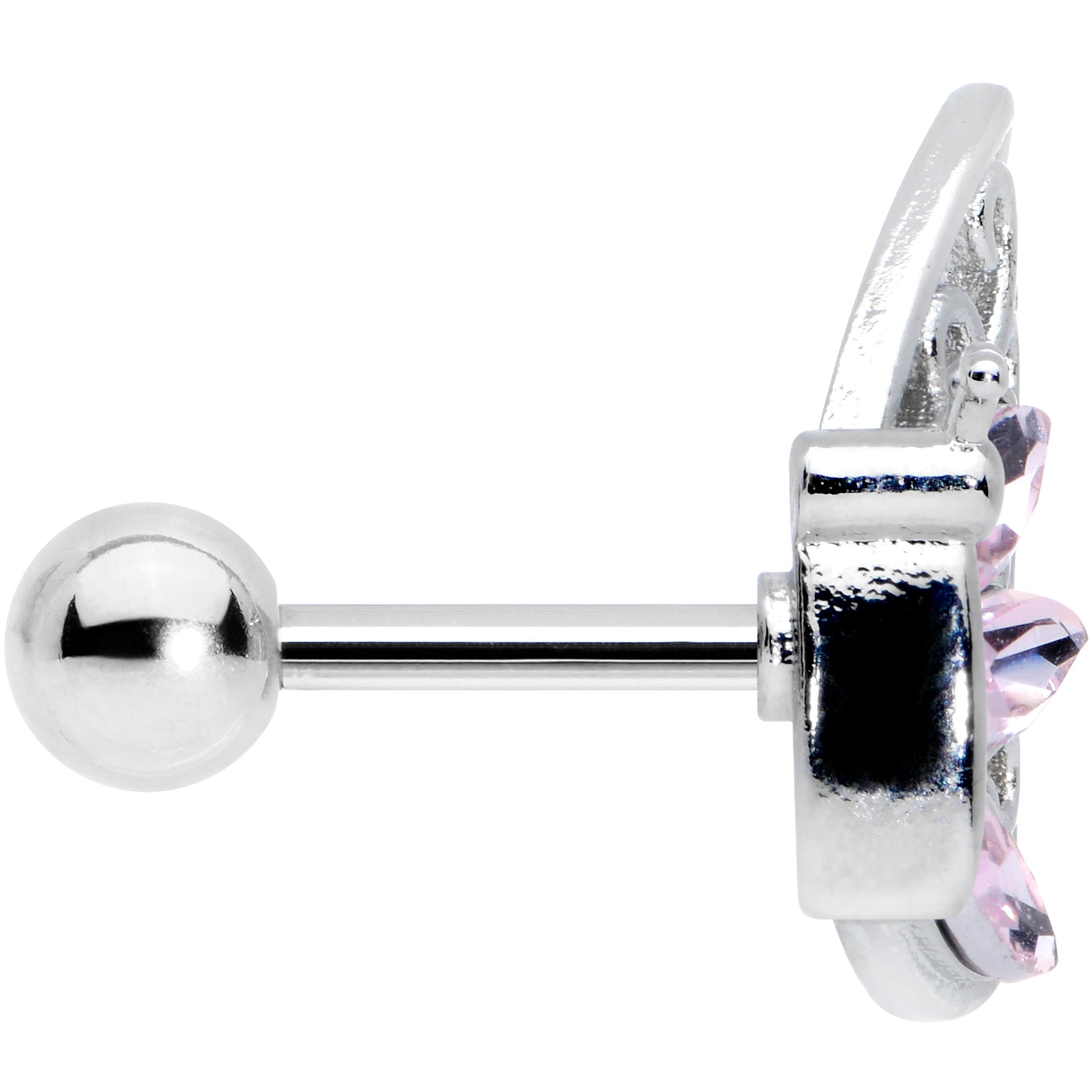 The butterfly on this 16 gauge cartilage stud almost improves on nature itself! It's made with a 6mm durable 316L surgical grade stainless steel straight barbell with a 4mm ball end. It features a butterfly charm, set along the wing with pink gems that can't help but catch the eye of any onlooker. The butterfly's wing is open work with lacy patterns running through for a look that's elegant. And you can rock this butterfly in multiple piercings including helix, tragus, and some conch piercings. Let your cartilage piercing come out of its cocoon with this visually striking butterfly cartilage jewelry!