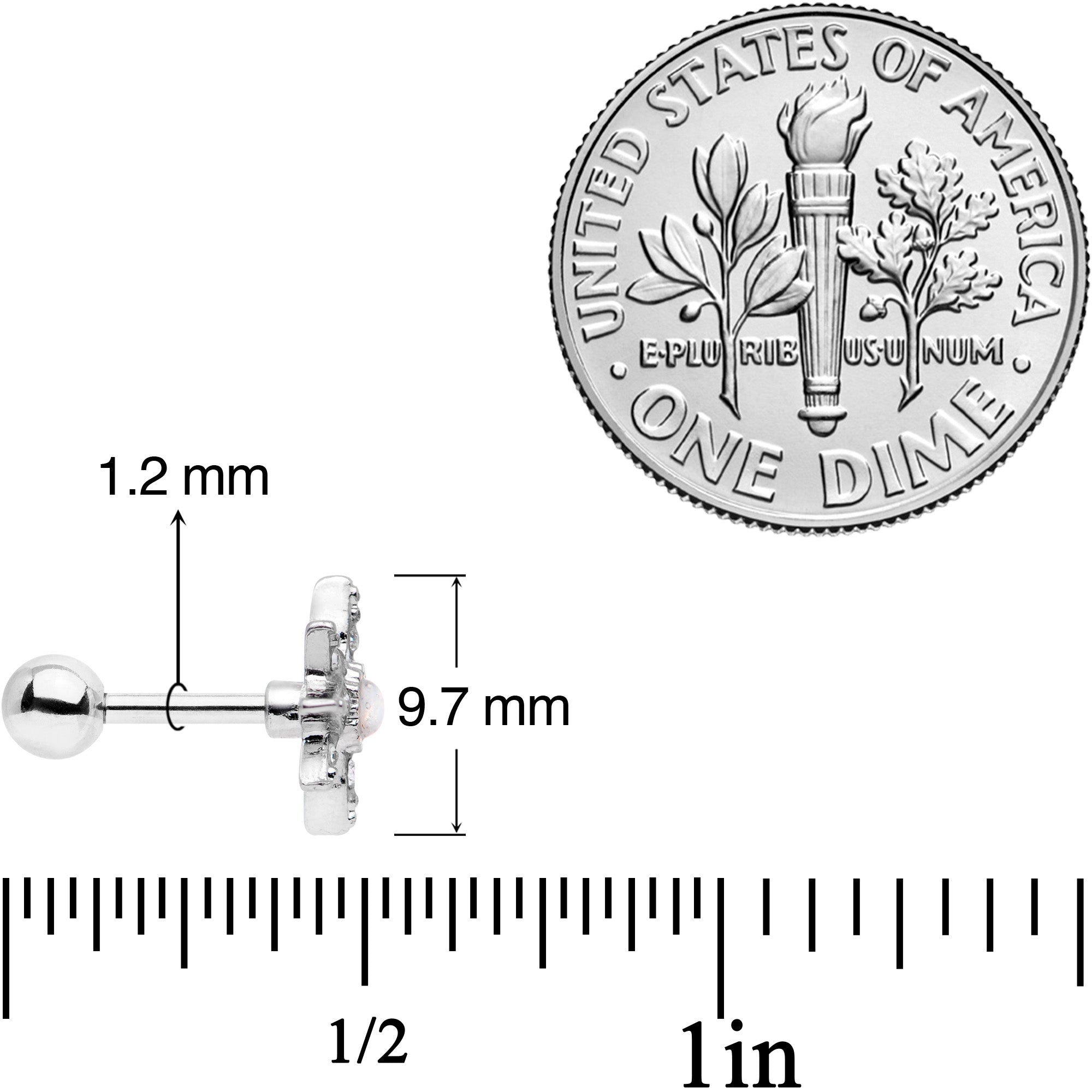 The whole night sky has come out to play in this three-piece set of 16 gauge cartilage studs! They're made with 6mm durable 316L surgical grade stainless steel straight barbells with 3mm ball ends. One features a crescent moon charm with a deep red gem at its center and tiny pink gems down the side. The second stud earring features an eight-pointed star, set at the points with clear cubic zirconia gems and featuring a large white orb at its center. The third tragus earring has a simple ball-end, set with a clear gem. These cartilage studs can be used in multiple piercings including the tragus, helix, conch, and other cartilage piercings so you'll never have to choose where to wear them! Thank your lucky stars! Sold as a set of three.