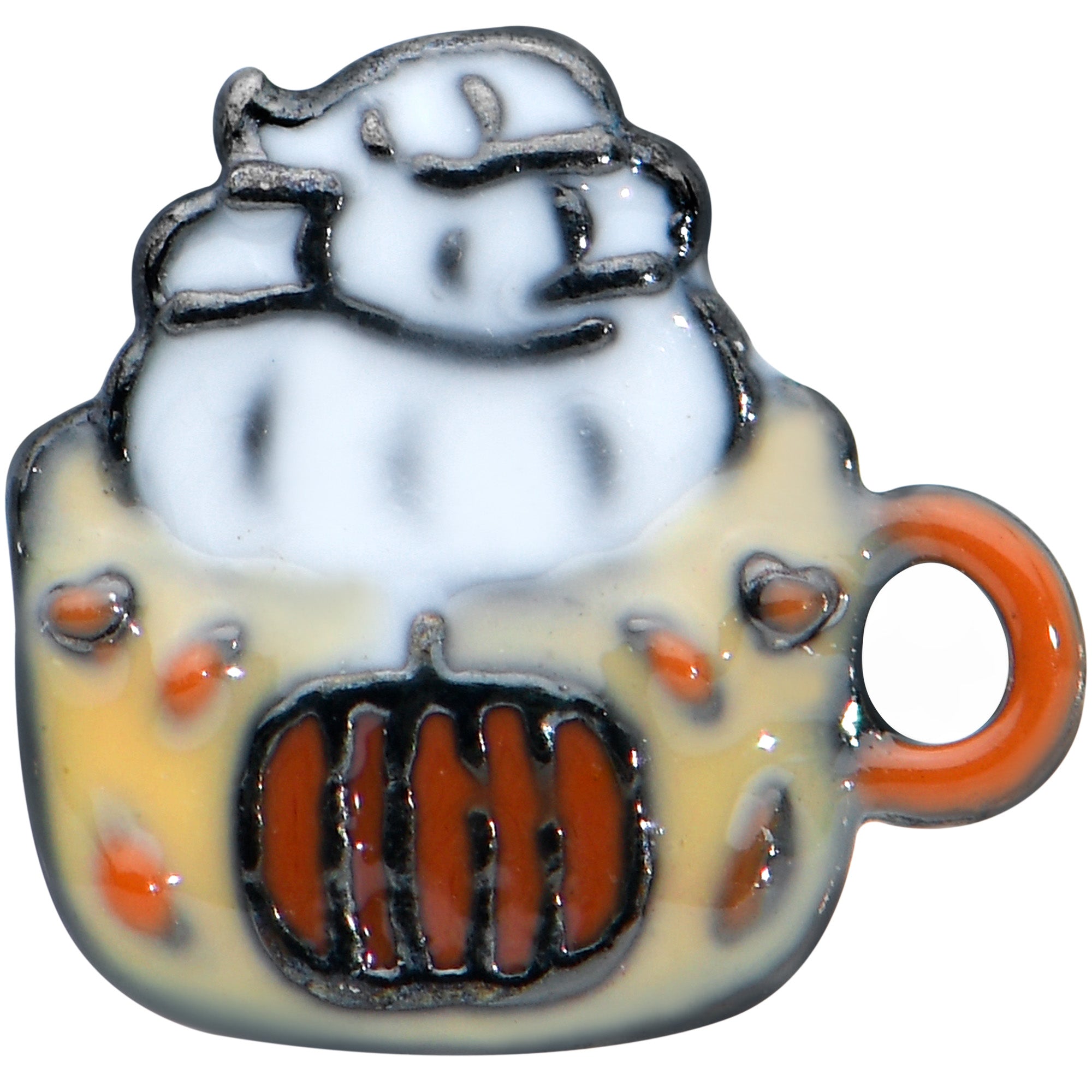 Fall means it's pumpkin spice time....like on this 16 gauge tragus stud! It's made with a 6mm durable 316L surgical grade stainless steel straight barbell with a 4mm ball end. It features a coffee mug charm. It has whipped cream on the top and is embellished with a pumpkin right on the mug for a perfectly seasonal touch. You can even rock it in multiple piercings including tragus, helix, and some conch piercings. If you're all about pumpkin spice everything, this cartilage stud has pumpkin spice and everything nice!