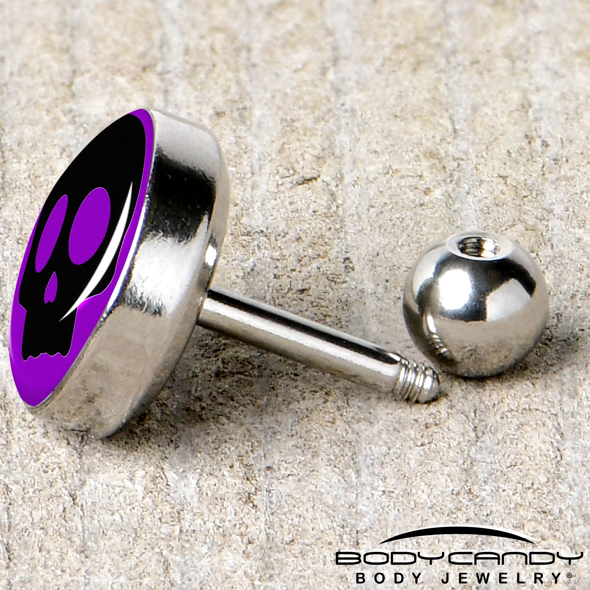 Hypoallergenic jewelry for sensitive skin.16 Gauge 1/4 Purple Black Simple Skull Tragus Cartilage Earring