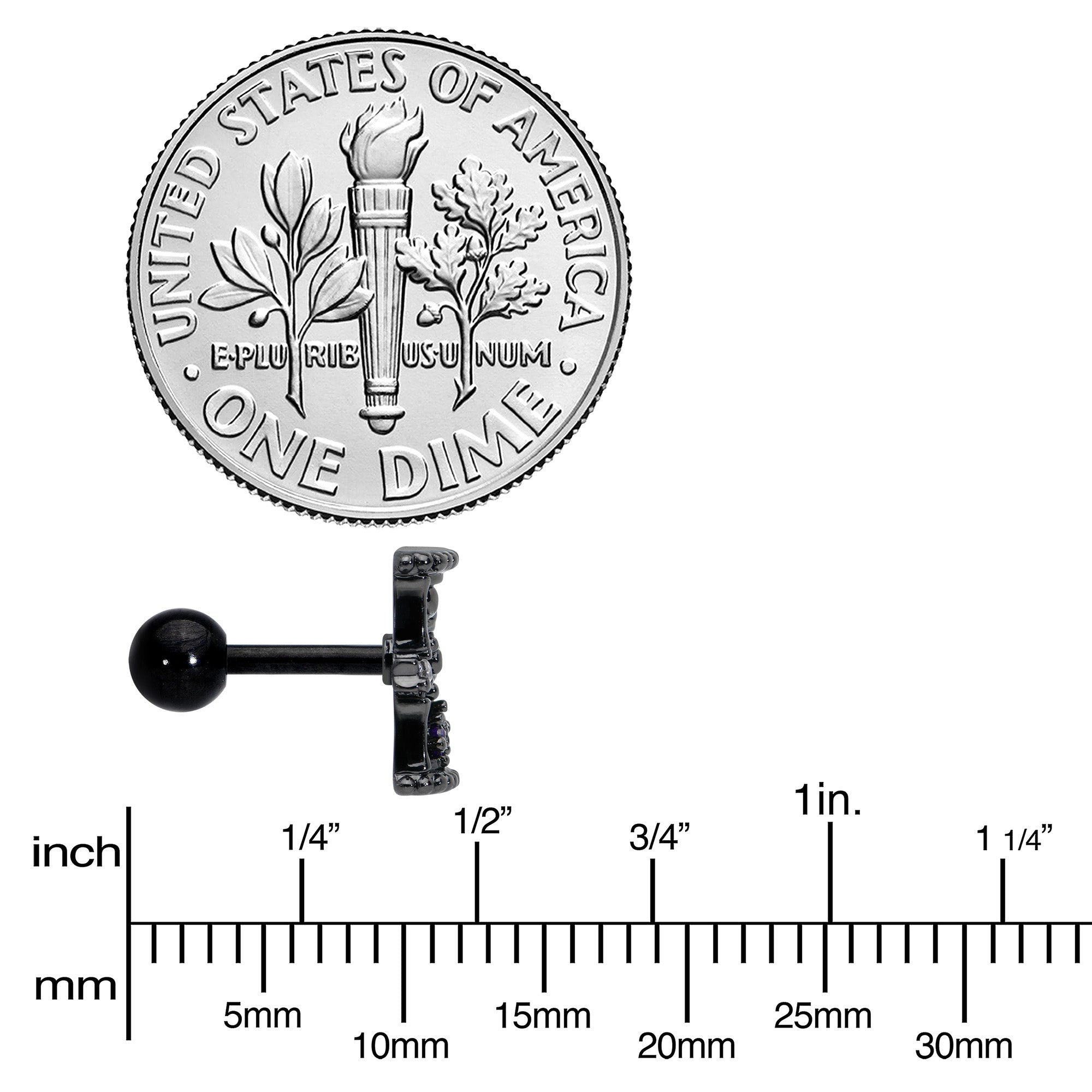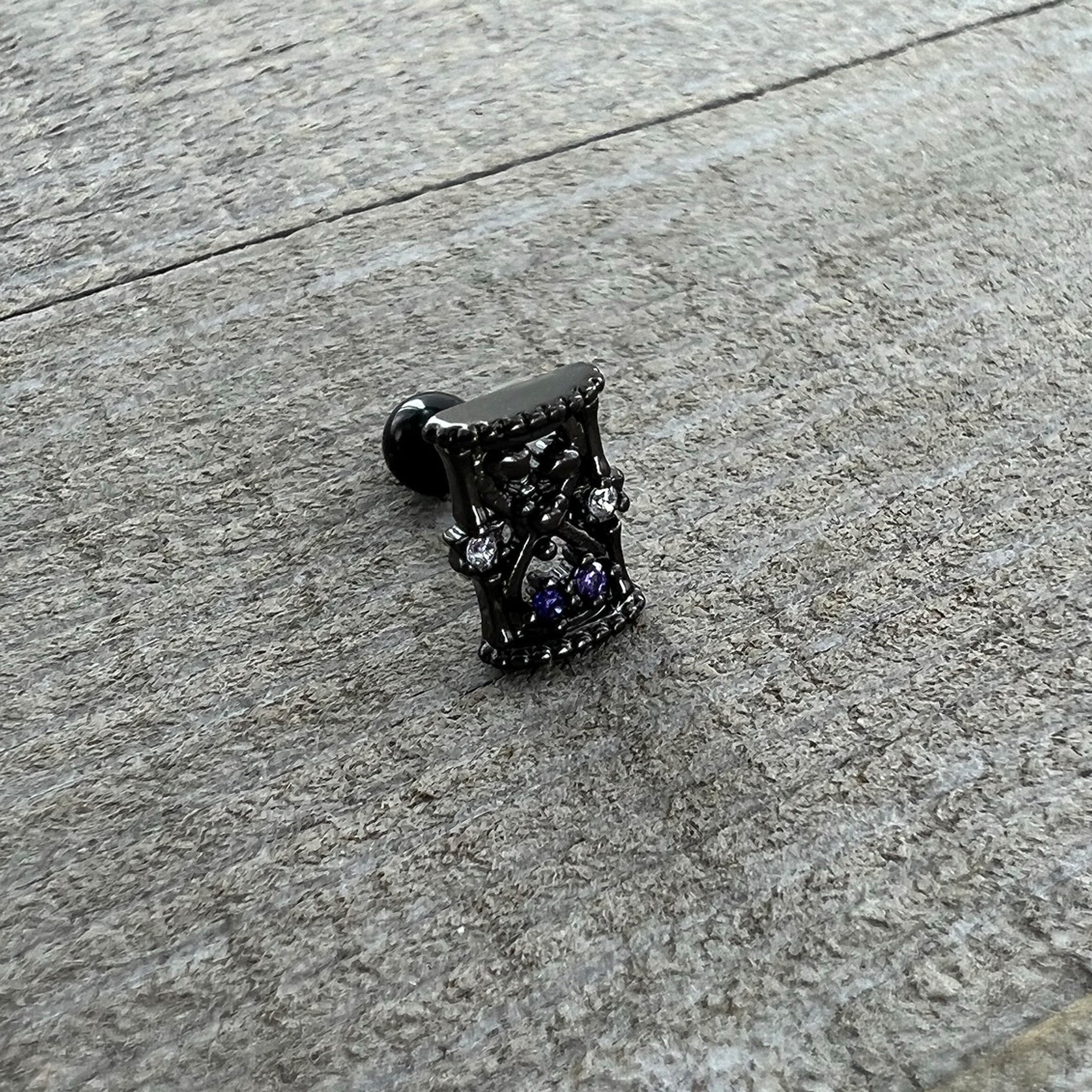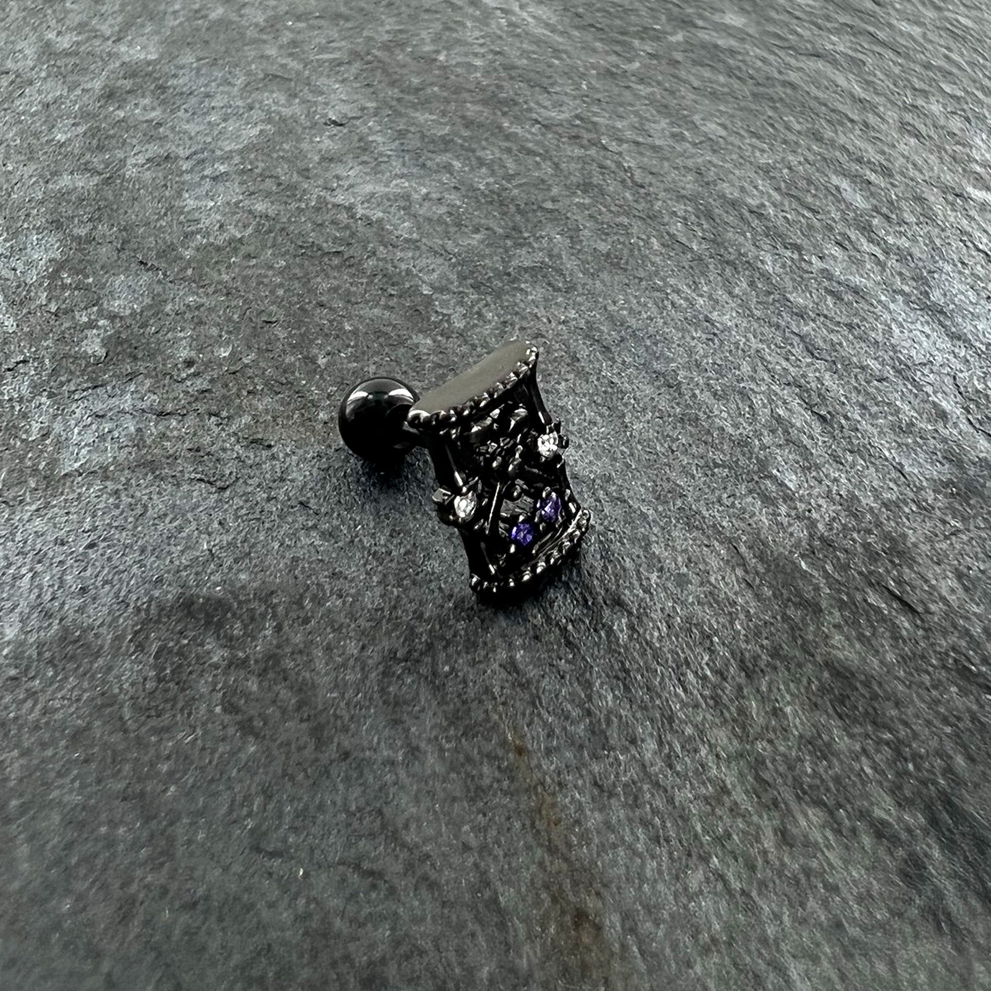16 Gauge 1/4 Purple Gem Black Gothic Hourglass Cartilage Tragus Earring