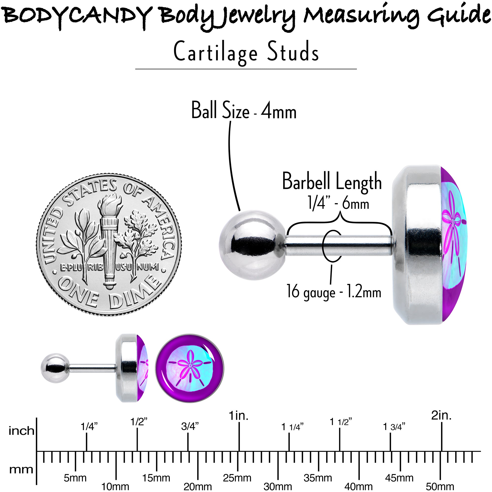 Hypoallergenic jewelry for sensitive skin.16 Gauge 1/4 Purple Nautical Sand Dollar Cartilage Tragus Earring