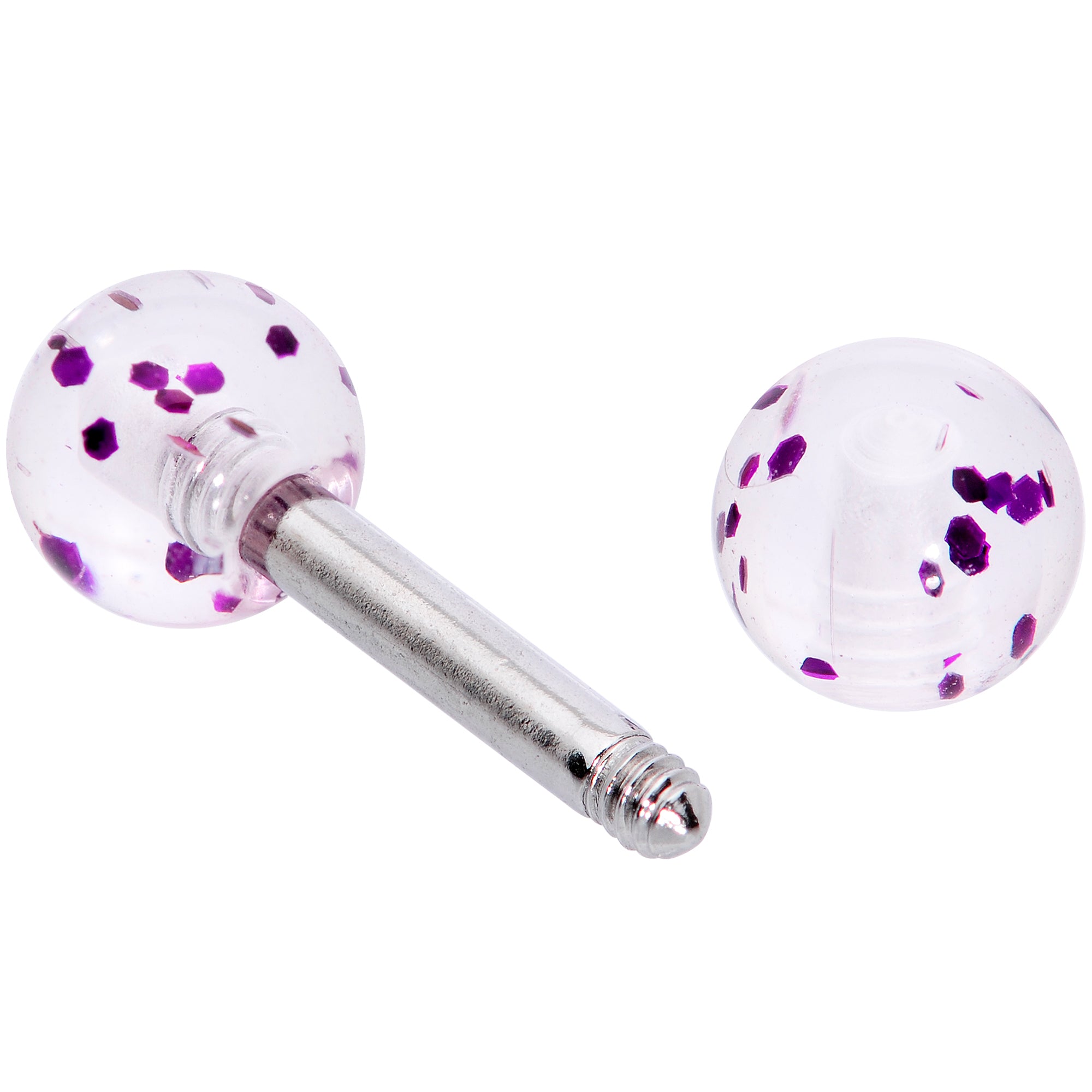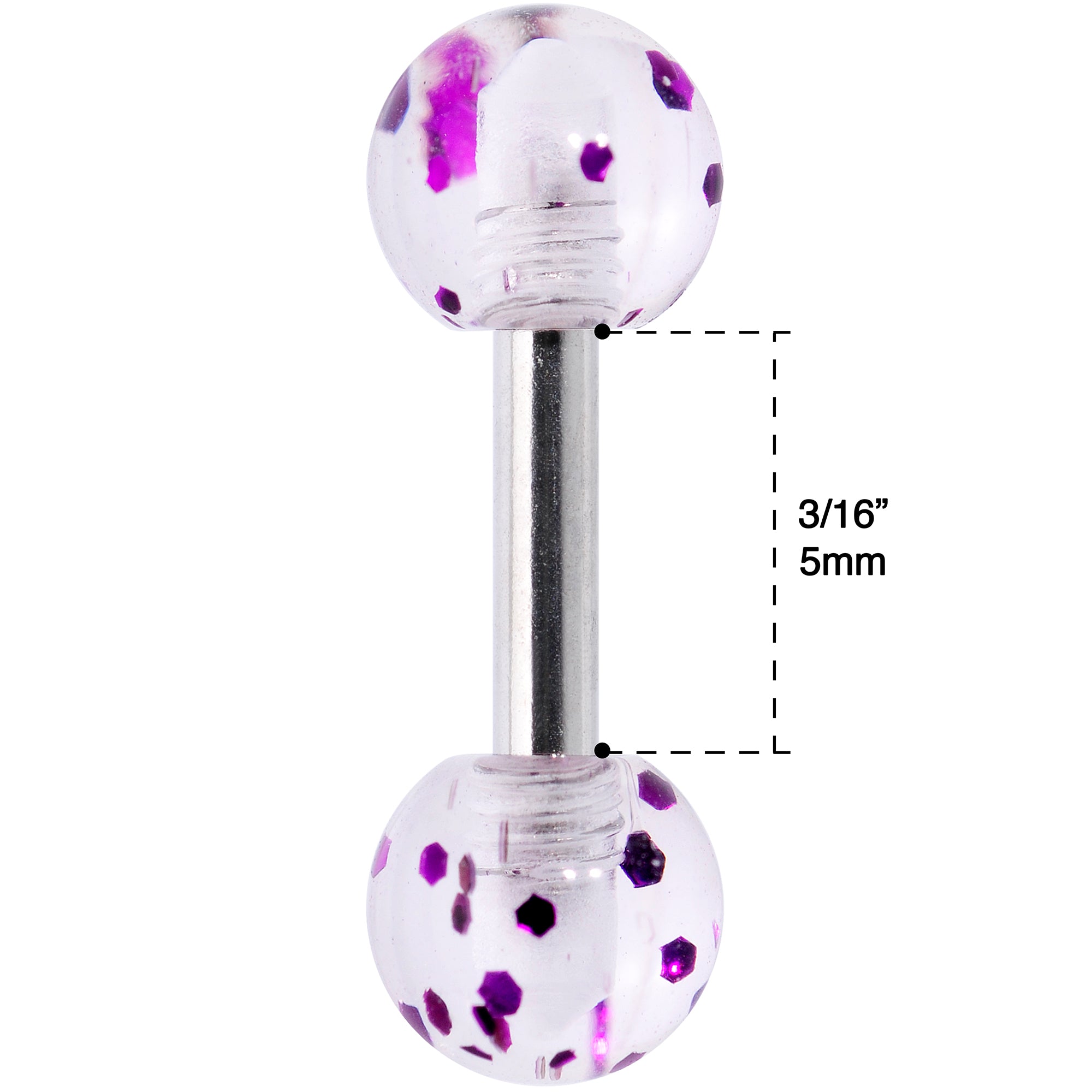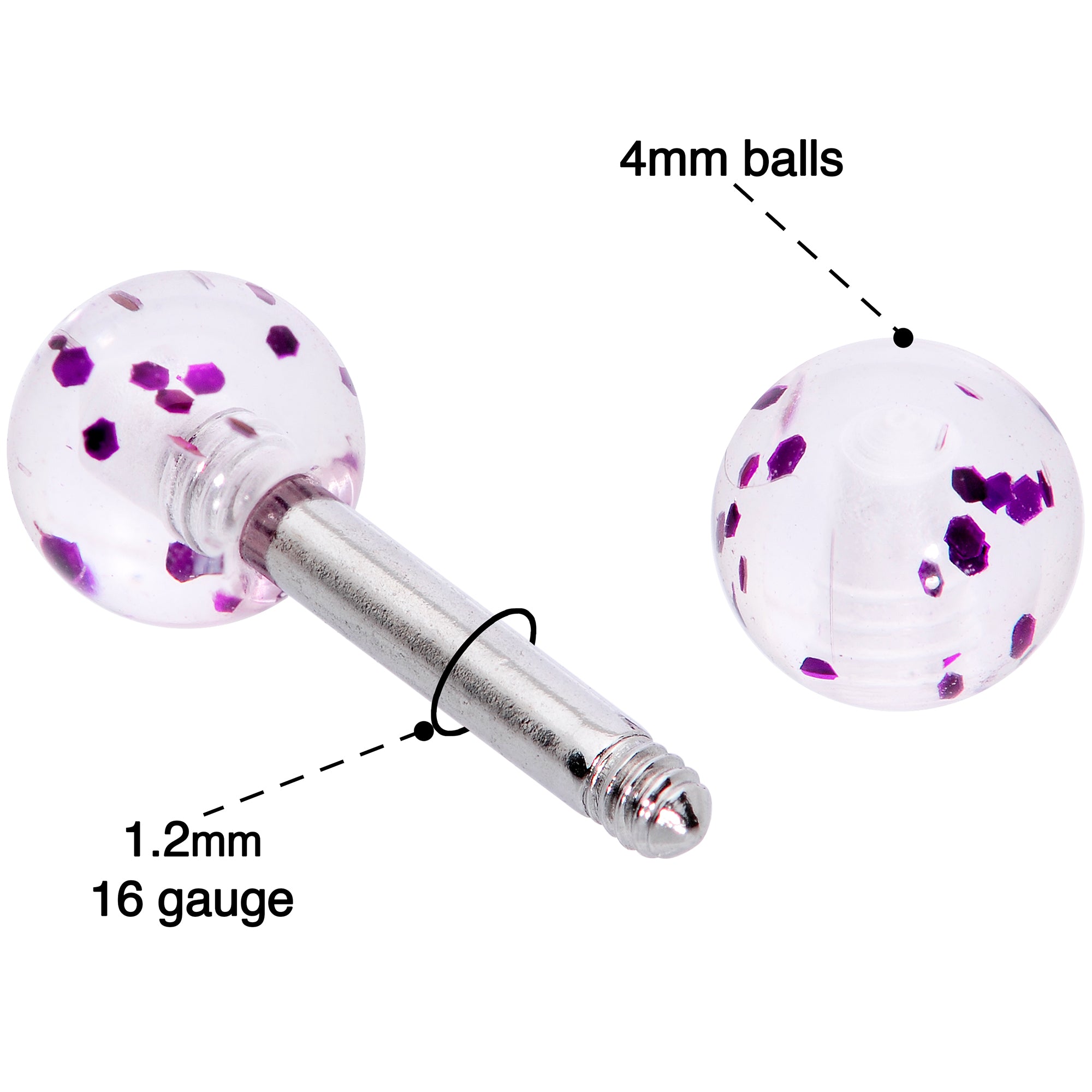 If you love to decorate your ears with all kinds of different body jewelry then you will love this 16 gauge straight barbell jewelry for its simplistic beauty! Made with a 6mm durable 316L surgical grade stainless steel straight barbell, this cartilage earring features 4mm clear acrylic ball ends with a purple splatter pattern that can be worn in a variety of cartilage piercings including the conch, helix, tragus, and more.