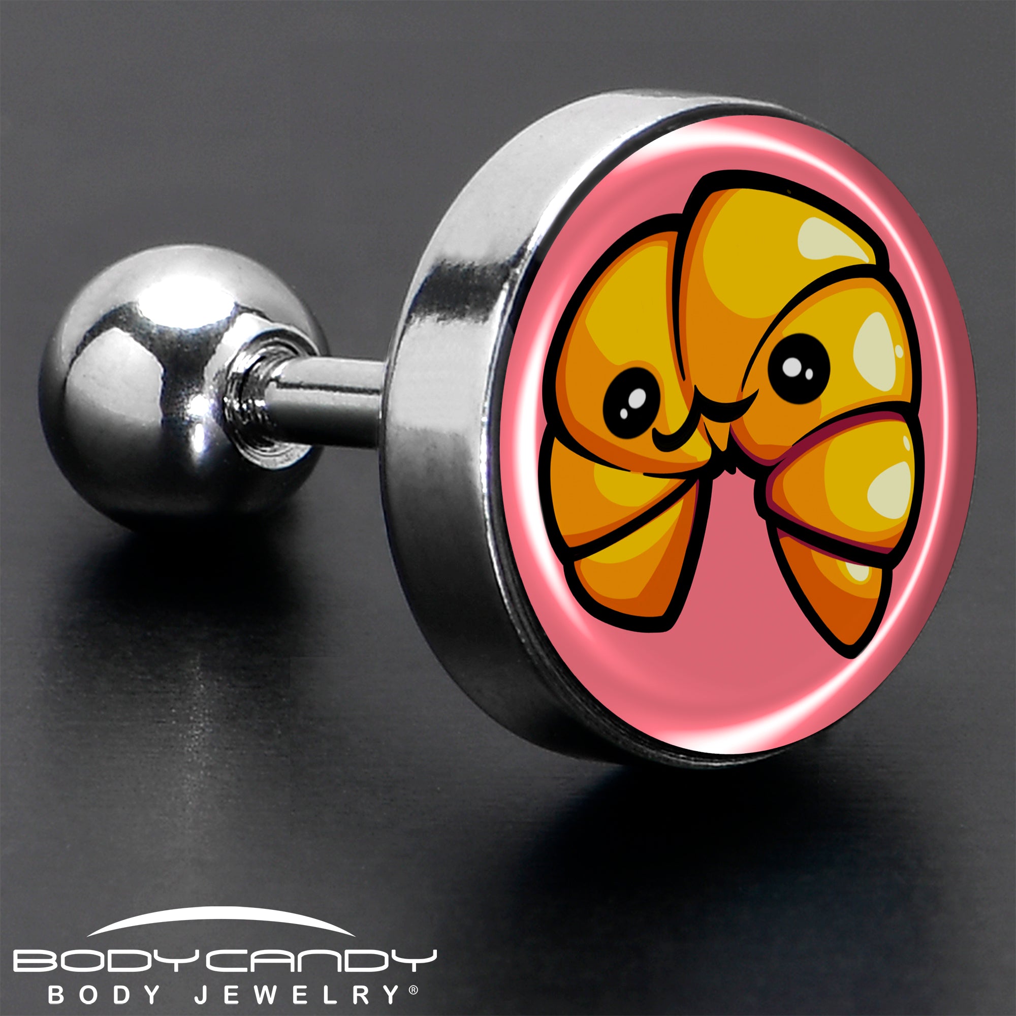 Is it Croissant or Quaso; you decide. Today is a good day to wear this Croissant earring. Mmm, all that buttery flaky style coming from this 16 gauge croissant tragus stud is enough to make you feel like you're in an elegant cafe with a nice, hot latte. It's made with a 6mm hypoallergenic 316L surgical grade stainless steel straight barbell with a 4mm ball end. This artist hand-drawn croissant cartilage piercing ring is the perfect blend of whimsy and elegance, designed to bring a unique touch to your body piercing jewelry collection. With its creative and delicious looking croissant charm, it's a fun way to express your personality while enjoying high-quality body piercing jewelry and you can rock it in multiple piercings including tragus, helix, and some conch piercings. Whether you're looking for a cool cartilage piercing stud or just want to look extra-tasty, this helix piercing jewelry is sure to hit the spot.