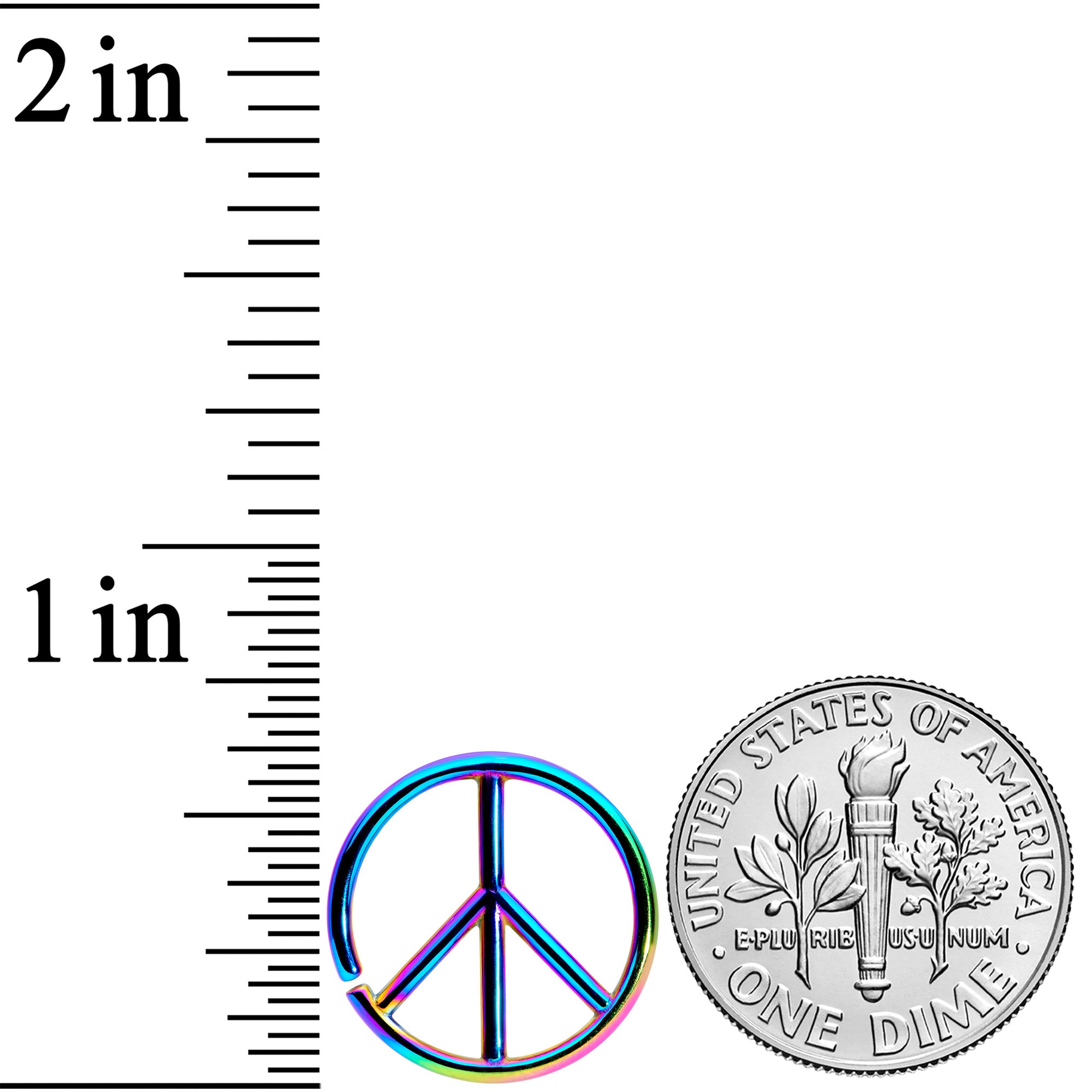 16G 1/4 Rainbow Retro Peace Sign Closure Ring