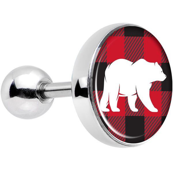 Hypoallergenic jewelry for sensitive skin.,16 Gauge 1/4" Red Black Plaid Polar Bear Tragus Cartilage Earring
