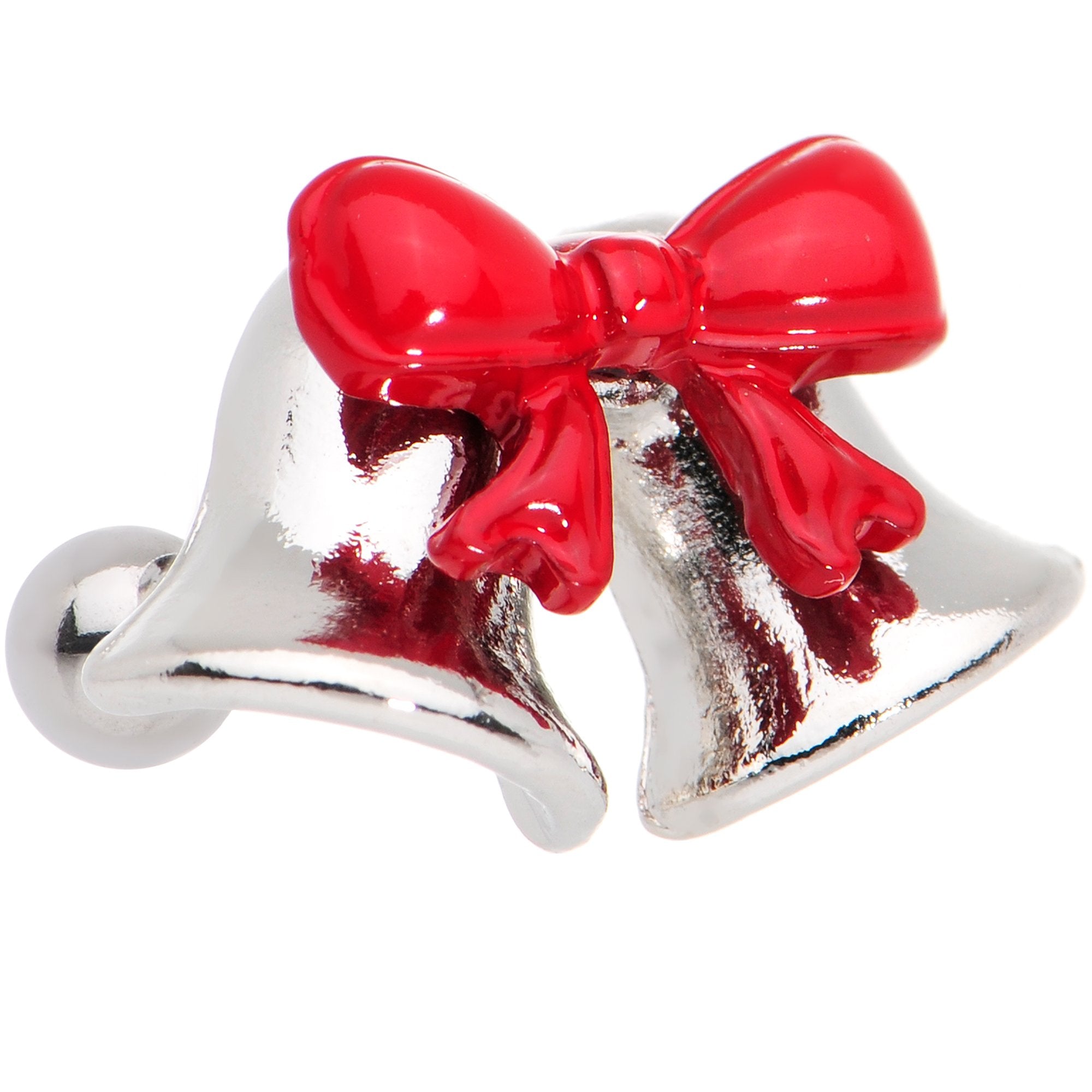 16 Gauge 1/4" Red Bow Ringing Holiday Bells Tragus Cartilage Earring