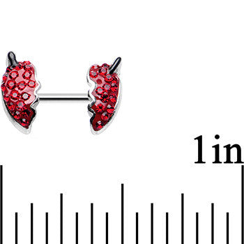 Looking for a new and creative way to decorate your helix cartilage piercings? This 16 gauge delicious strawberry cartilage earring is exactly the type of barbell Body Jewelryyou'll need to complete you new style and bring your ear candy up a notch. The 6mm wearable area barbell length is made from durable 316L surgical grade stainless steel and connects the two halves of the sparkling red strawberry fruit for a peek-a-boo style look that's perfect for double helix piercings.