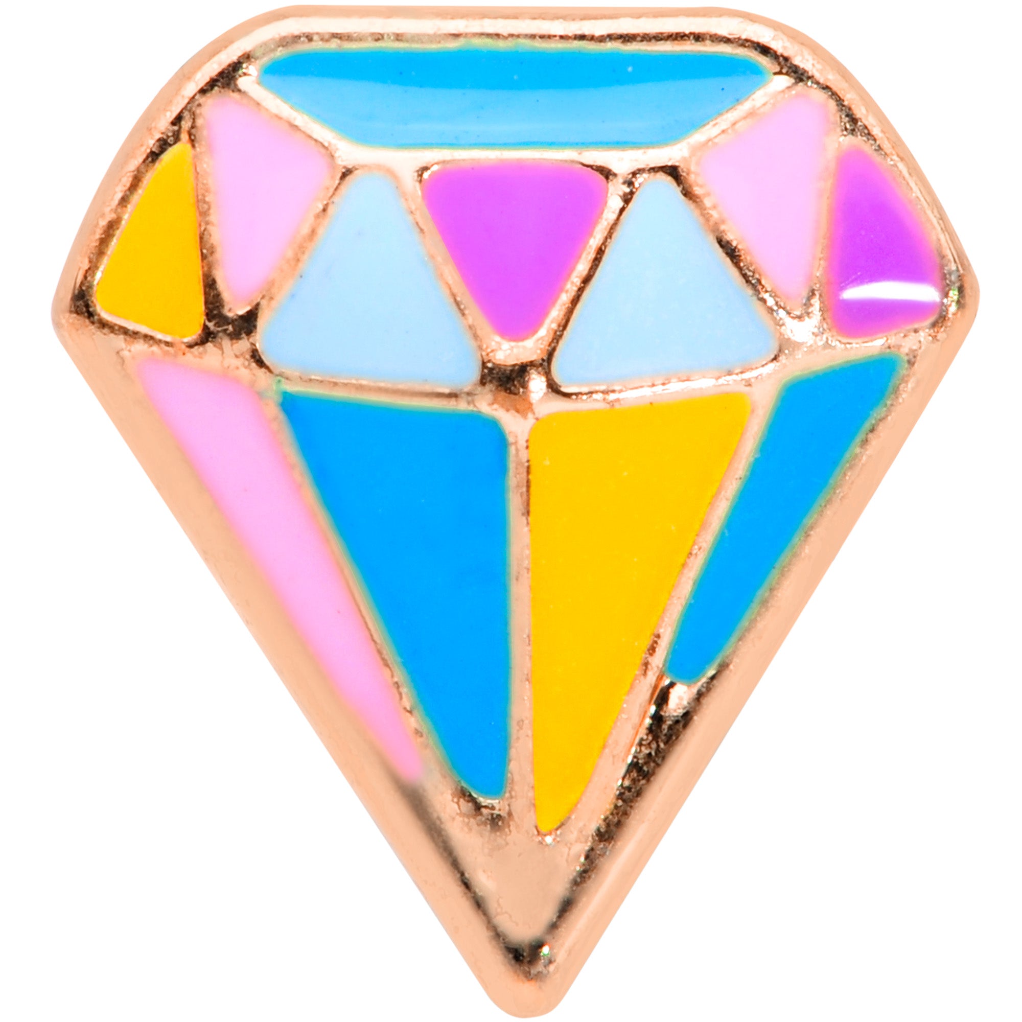 This 16 gauge cartilage jewelry is some treasure-hunter's prize, indeed! It's made with a 6mm rose gold tone plated over 316L surgical grade stainless steel straight barbell with a 4mm ball end. It features a charm, made to resemble some fabulous jewel, with the facets inlaid in pastel shades of blue, yellow, and purple. The trompe l'oeil effect is both elegant and endearing. And you can rock this "rock" in multiple piercings including helix, tragus, and some conch piercings. This a tragus ring that will rock your world!