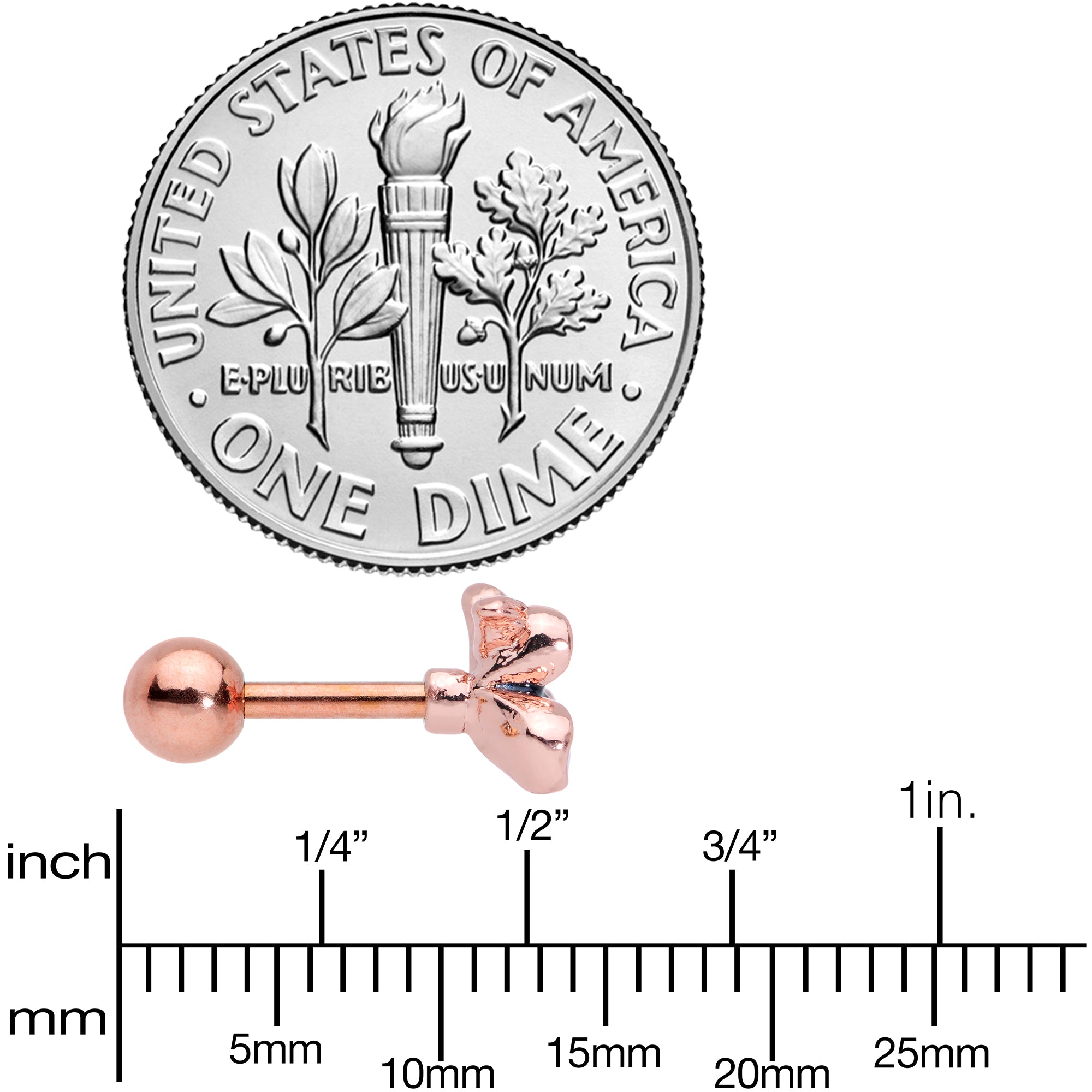 16 Gauge 1/4 Rose Gold Tone Tropical Flower Cartilage Tragus