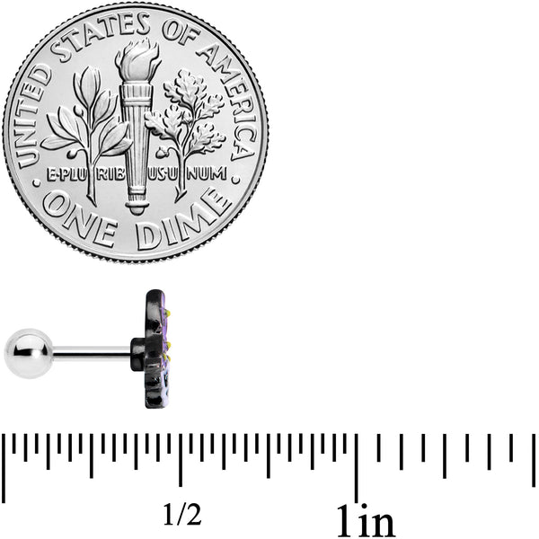One wonders what unearthly powers the skull on this 16 gauge cartilage stud may hold! It's made with a 6mm durable 316L surgical grade stainless steel straight barbell with a 4mm ball end. It features a creepy skull charm with textured detailing. The skull is wearing a purple witch's hat, also textured for an eerily realistic appearance. And you can sport this skull in multiple piercings including tragus, helix, and some conch piercings! This cartilage jewelry is sure to cast its Halloween-perfect spell on you!