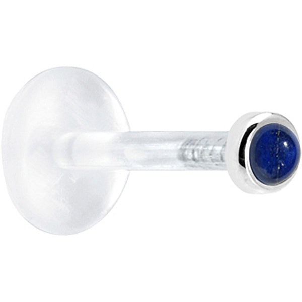 16G 1/4 Solid 14K White Gold 2mm Genuine Blue Lapis Lazuli Bioplast Tragus Earring Stud