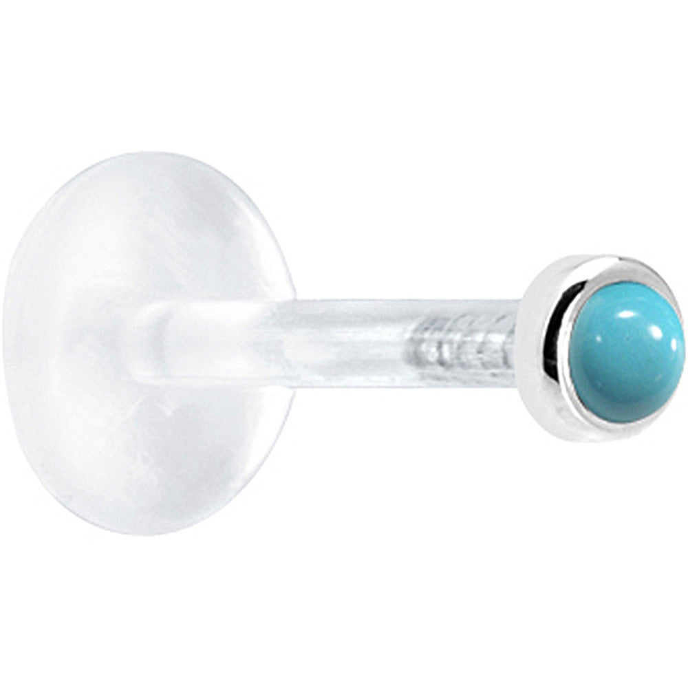 16G 1/4 Solid 14K White Gold 2mm Genuine Turquoise Bioplast Cartilage Earring Stud