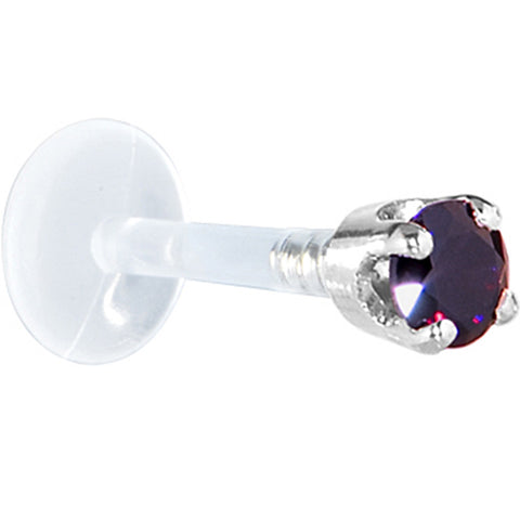 16G 1/4 Solid 14K White Gold 3mm Amethyst Cubic Zirconia Bioplast Tragus Earring Stud