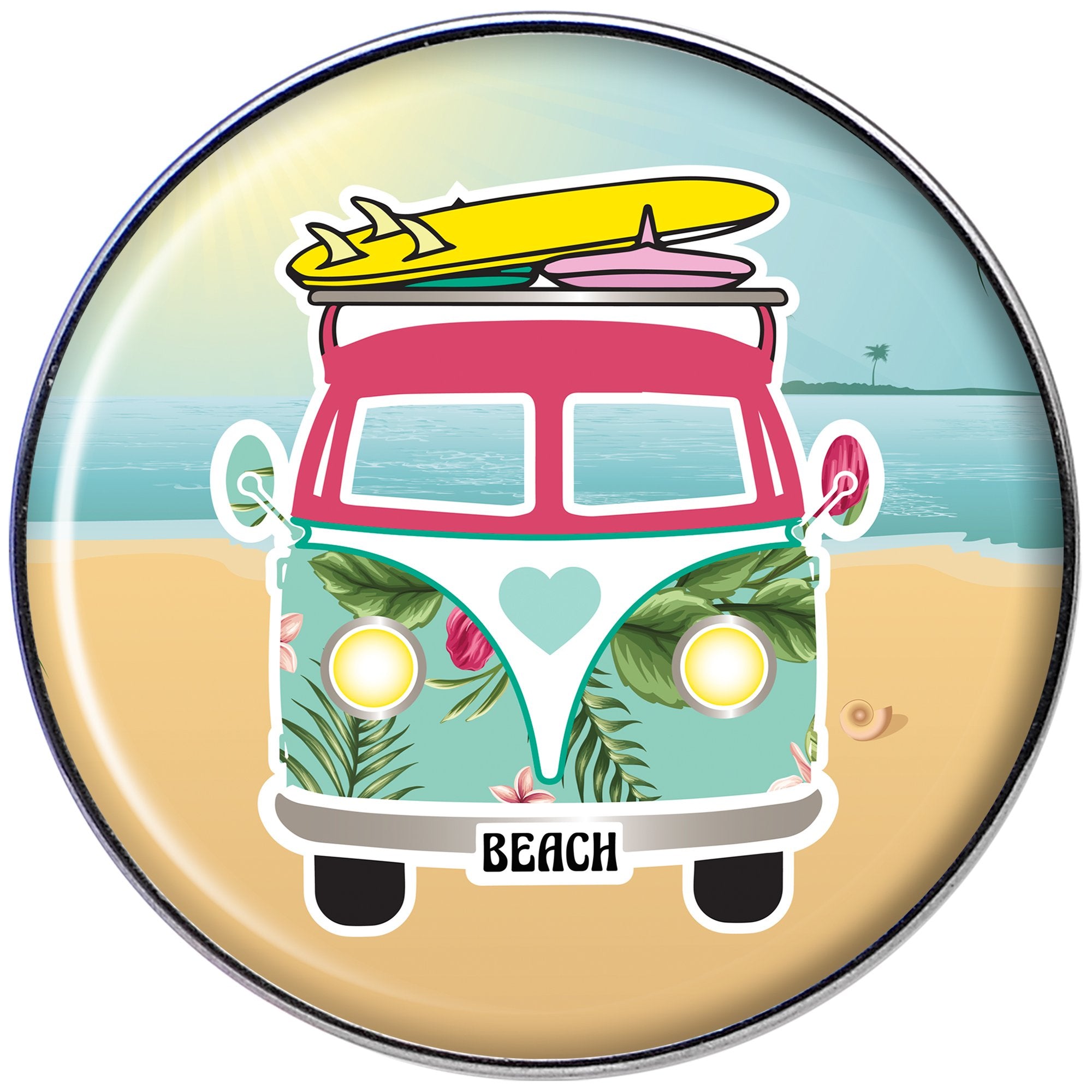 If you love getting out on the open road for travel and tropical adventure then this 16 gauge cartilage jewelry is right for you! Made with a 6mm durable 316L surgical grade stainless steel straight barbell, this tragus earring features a tropical beach cruiser with surfboards on top on a tropical beach background logo inlay.