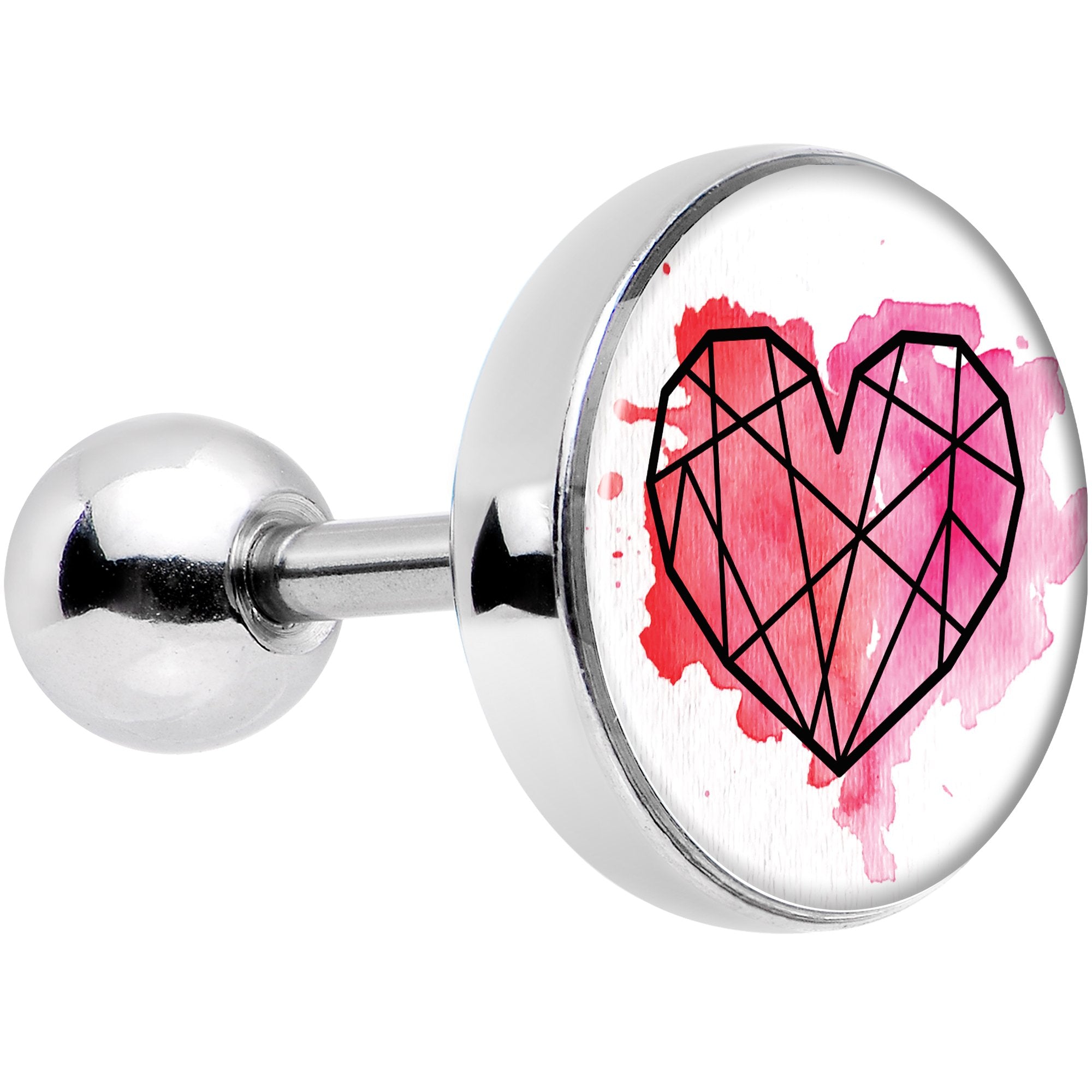 If you love being in love and Valentine's Day feels like every day then this 16 gauge cartilage jewelry is right for you! Made with a 1/4" durable 316L surgical grade stainless steel straight barbell, this tragus earring features a watercolor geometric heart logo inlay.