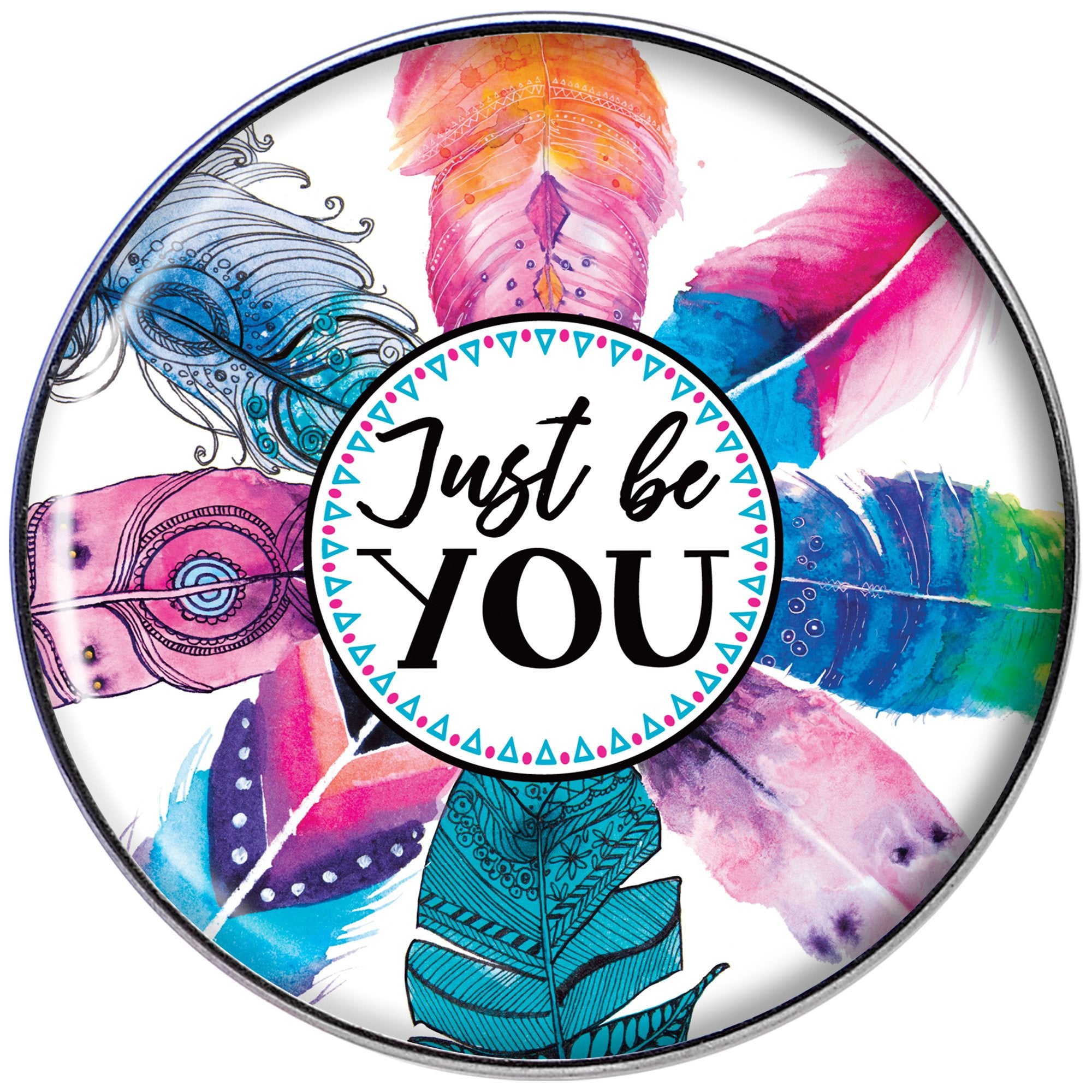 If you love all things feathers and are fully confident then this 16 gauge cartilage jewelry is right for you! Made with a 1/4" durable 316L surgical grade stainless steel straight barbell, this tragus earring features the words "Just Be You" over watercolor feathers logo inlay.