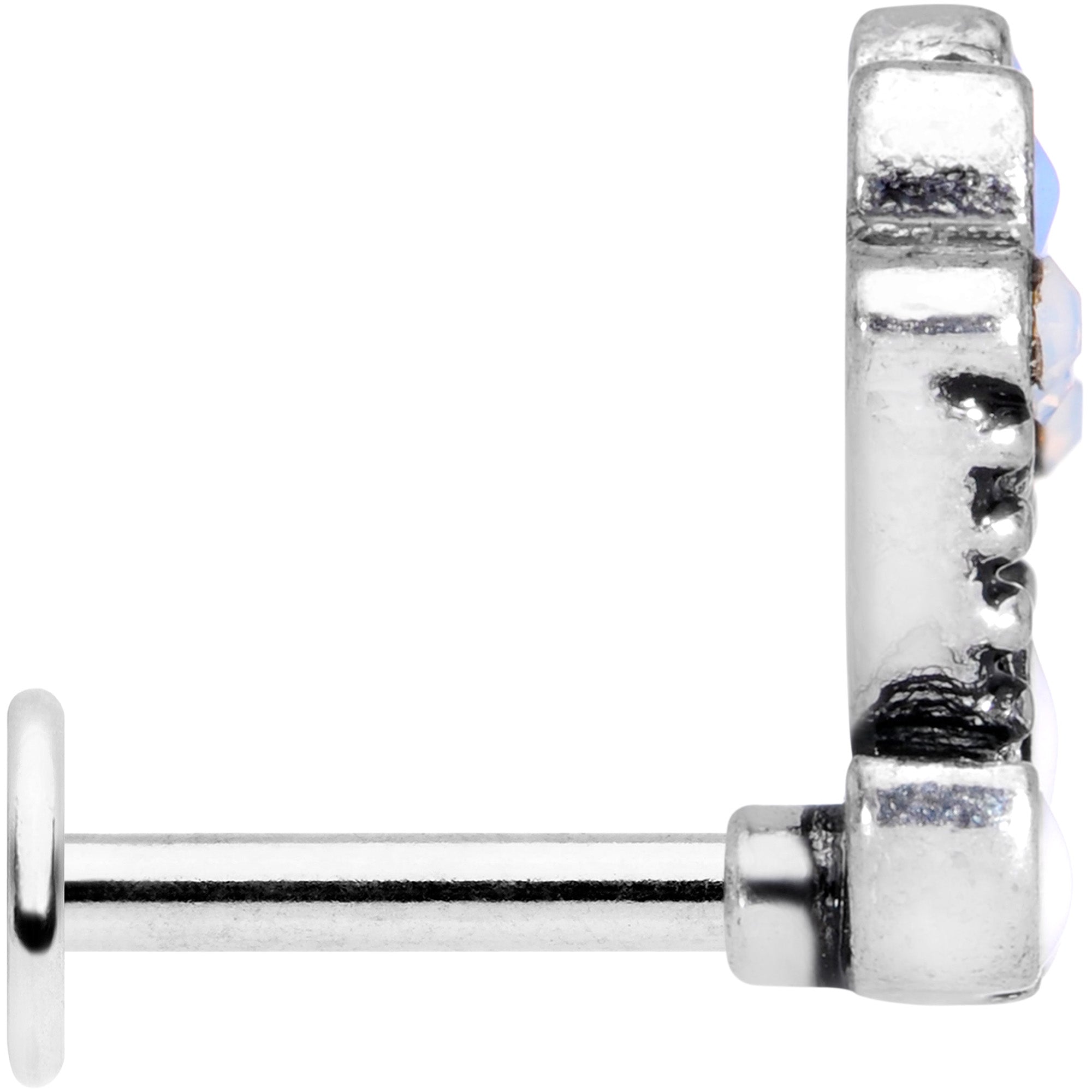16 Gauge 1/4 White Blue Faux Opal Ornate Labret Monroe Tragus