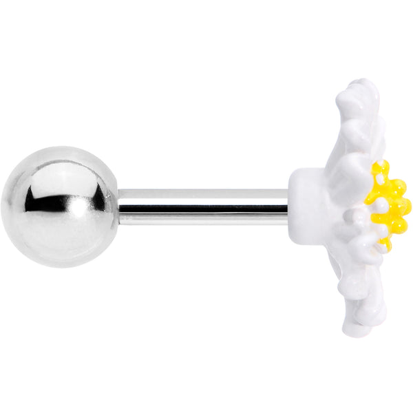 Let the daisy on this 16 gauge cartilage stud bedeck your piercing in colorful style! It's made with a 6mm durable 316L surgical grade stainless steel straight barbell with a 4mm ball end. It features a three-dimensional white and yellow flower charm. And you can rock this flower in multiple piercings including tragus, helix, and some conch piercings. Your cartilage piercing will blossom with this delicious daisy in it!