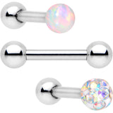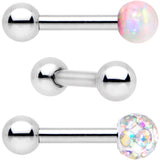 If you love options, then this is the perfect package of tragus and cartilage jewelry for you! This set of three 16 gauge straight barbells comes with one 3mm aurora gem cluster ball end, one 3mm white faux opal ball end, and four 3mm standard stainless s