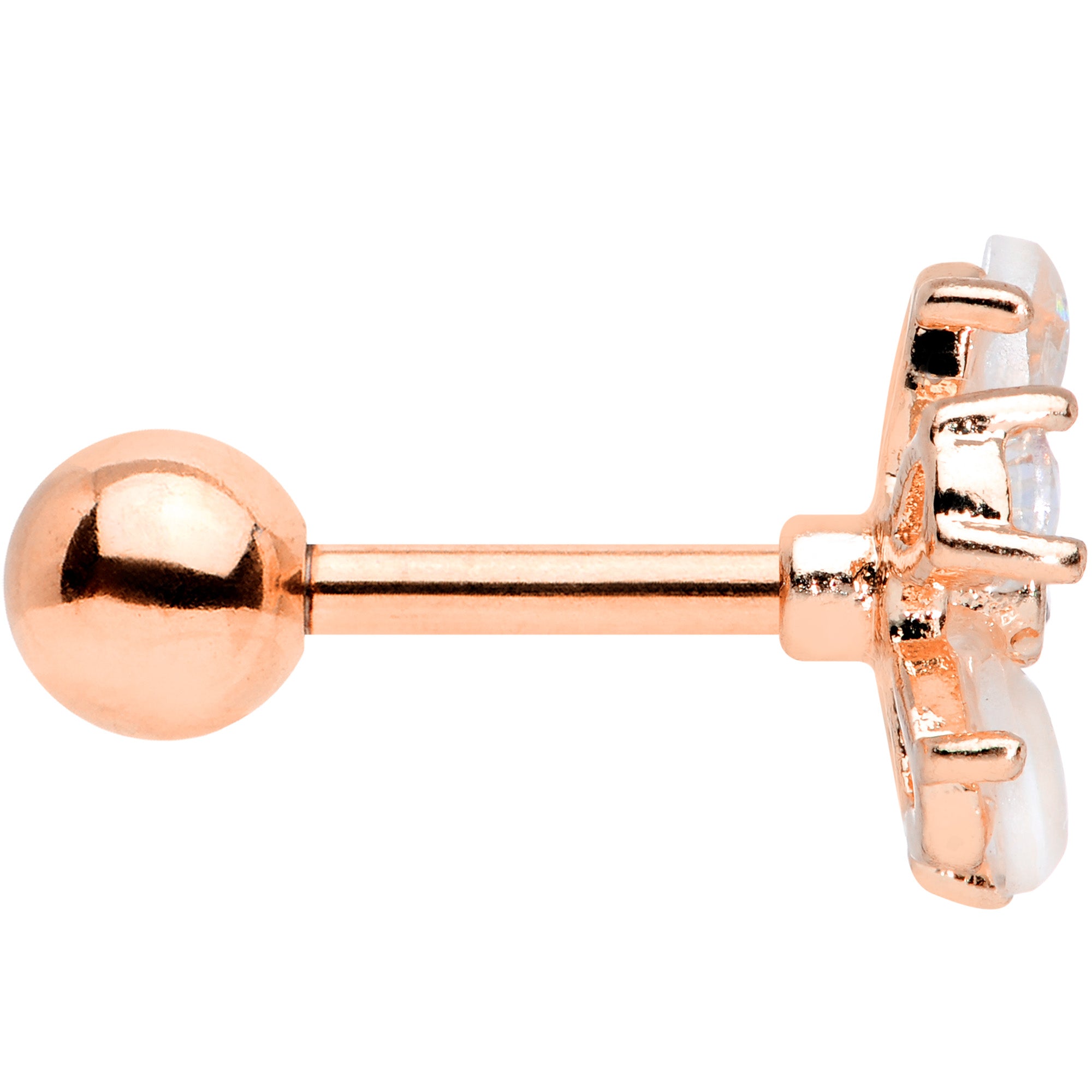 16G 1/4 White Faux Opal Rose Gold Tone Flower Cartilage Tragus