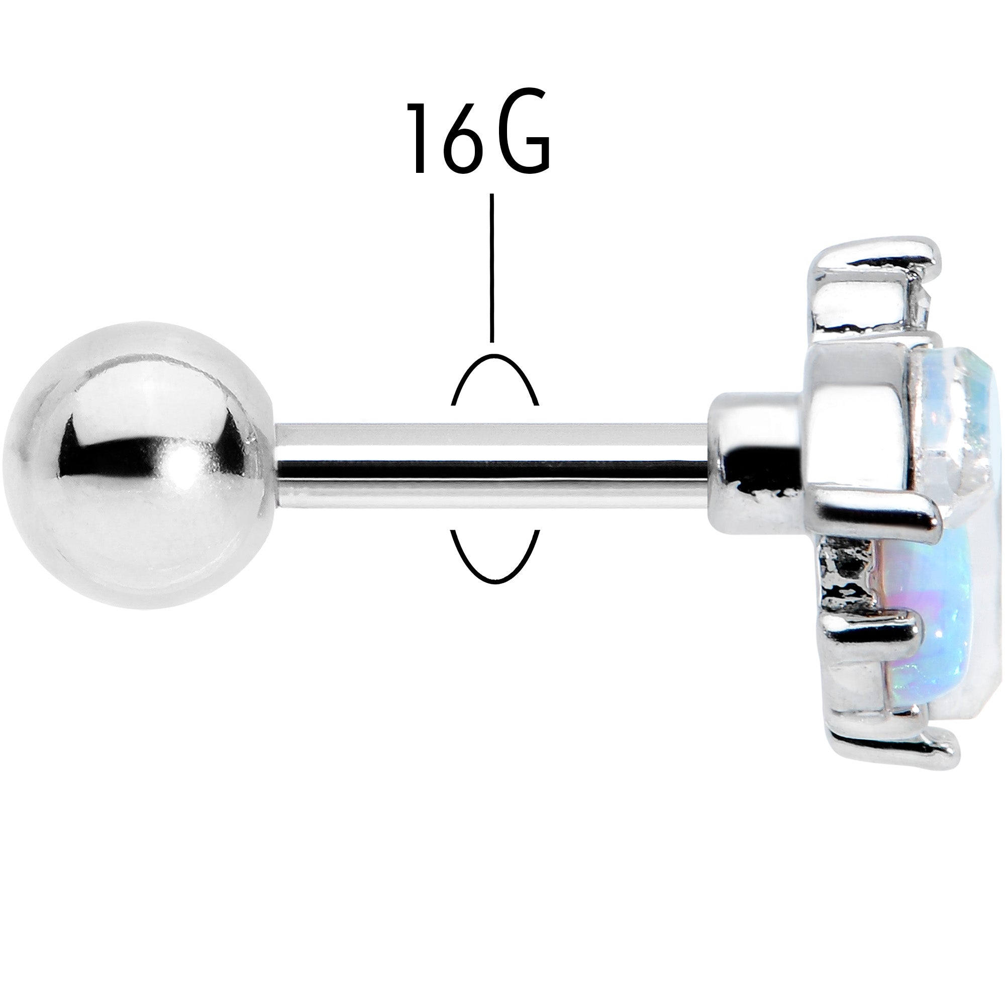 16 Gauge 1/4 White Synthetic Opal Flower Cartilage Tragus Earring