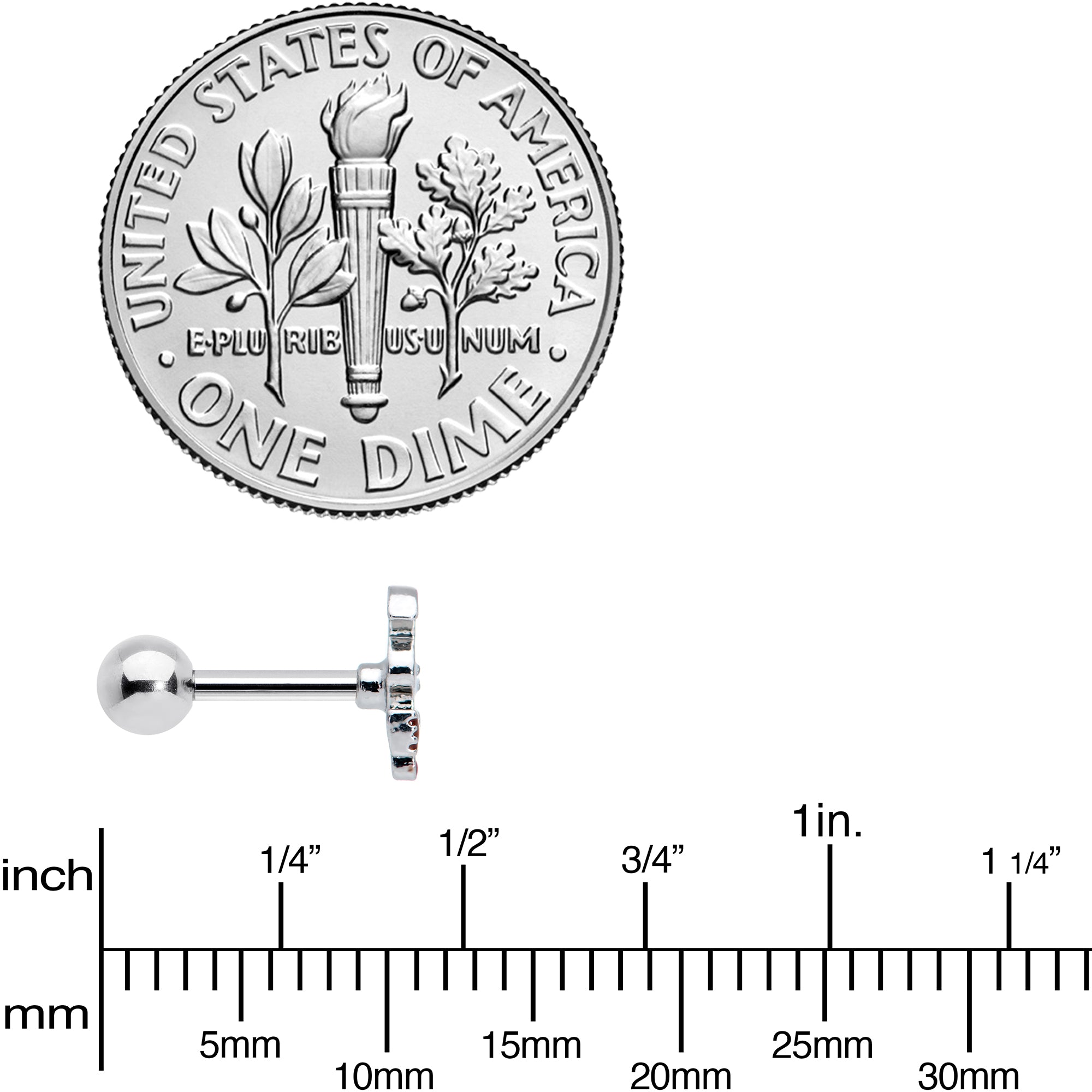 16 Gauge (1.2mm), 1/4" (6mm), 316L Surgical Grade Stainless Steel Straight Barbell, 4mm Ball End
