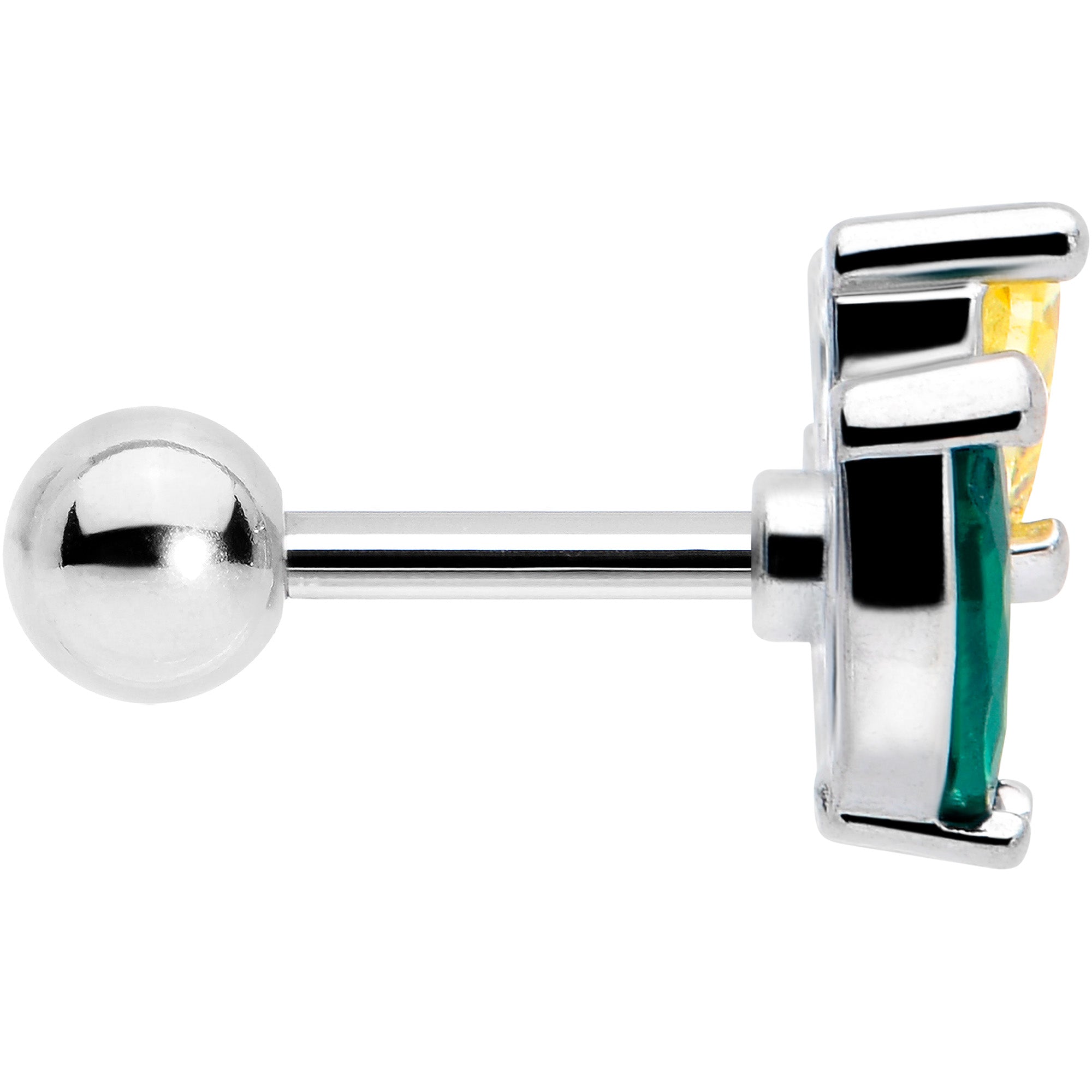 16 Gauge 1/4 Yellow Green CZ Gem Love Flower Cartilage Tragus Earring