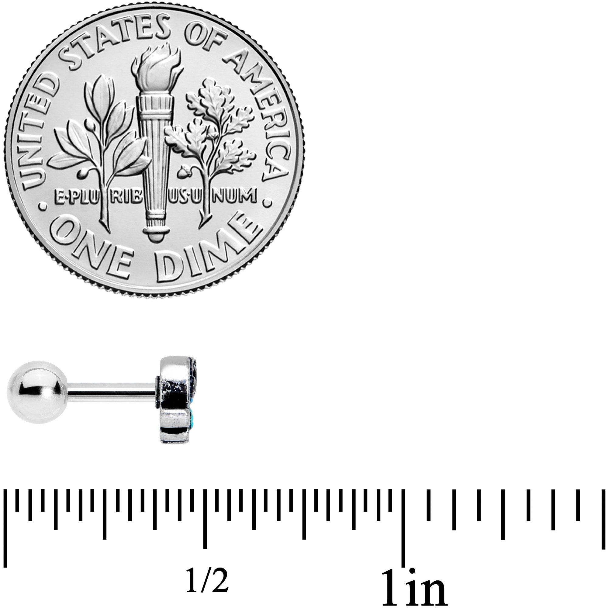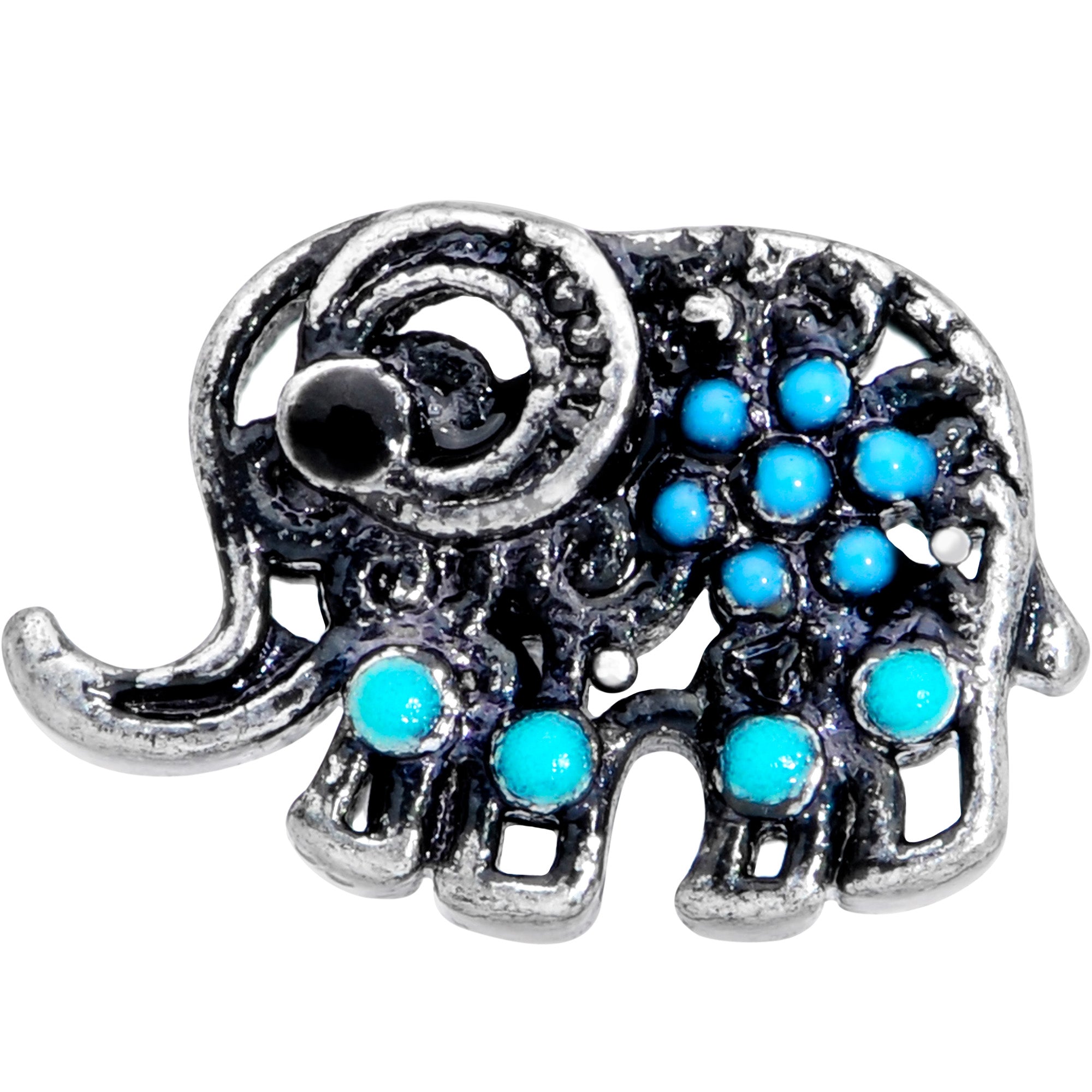 This elephant wants to bring its curvy and colorful style to your cartilage piercing on this 16 gauge tragus stud! It's made with a 6mm durable 316L surgical grade stainless steel straight barbell with a 4mm ball end. It features our adorable elephant charm with rounded lines, curled trunk and circular ears. The elephant is further embellished with aqua color orbs for a lovely splash of color. Best of all, this elephant can hang out in multiple piercings including tragus, helix, and some conch piercings. They say that elephants never forget and you're sure to remember this colorful curvy elephant cartilage jewelry!