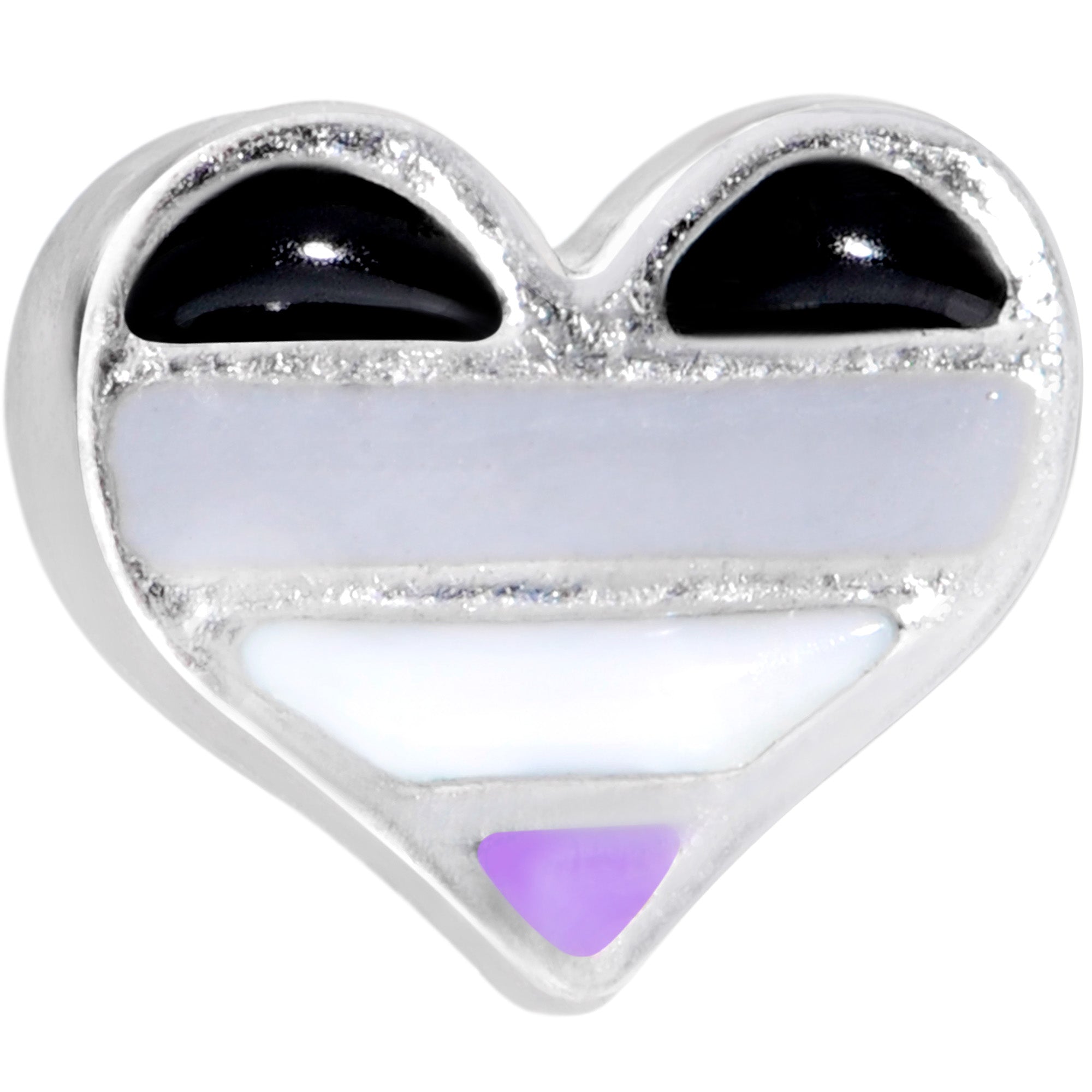 Show off your belief in individual rights when you wear this 16 gauge cartilage jewelry. Made with a 6mm durable 316L surgical grade stainless steel straight barbell, this tragus earring has a 3mm ball end. It features a black, gray, white, and purple asexual pride heart charm so you can show your support anytime. This cartilage stud works beautifully in multiple cartilage piercings, including helix, tragus, and conch.