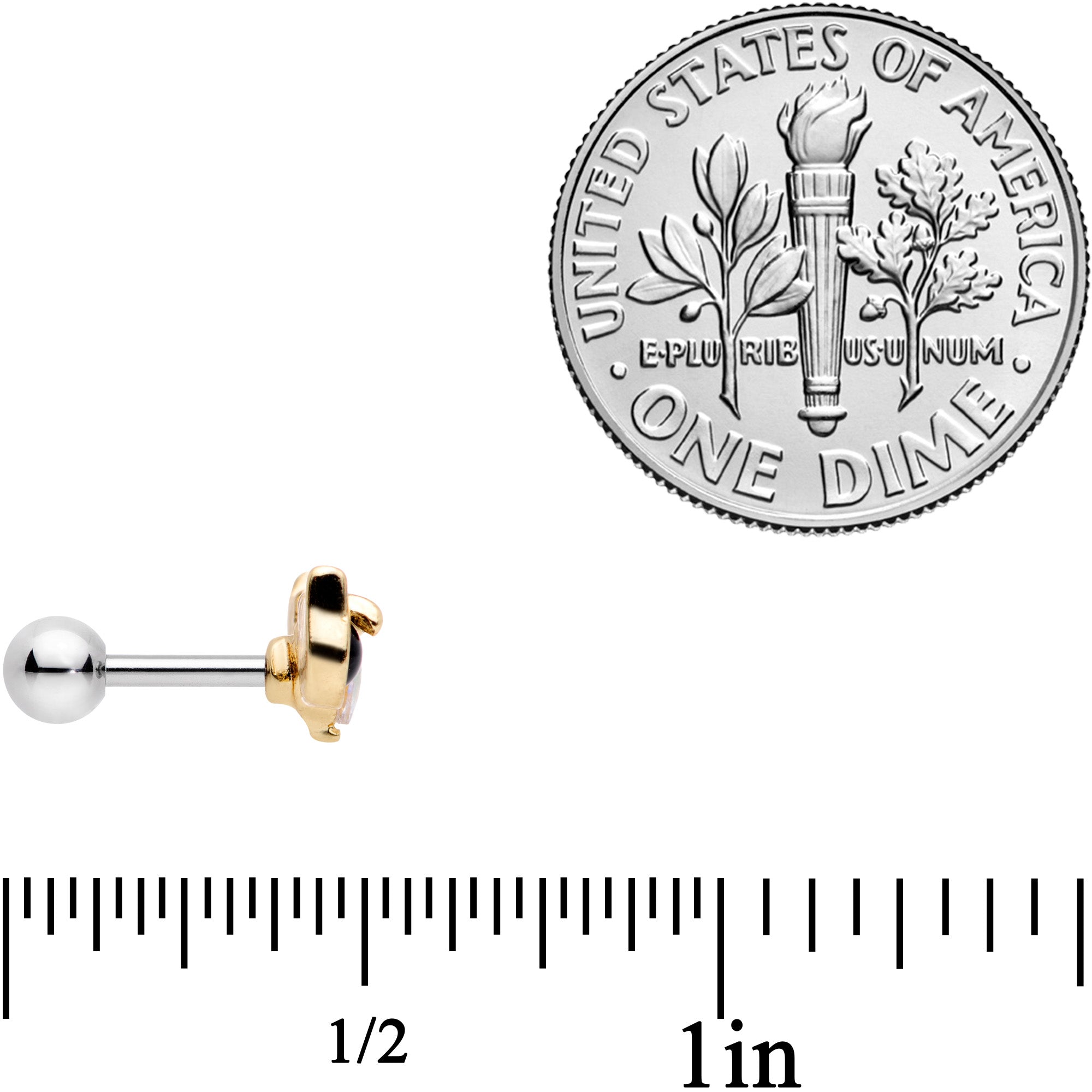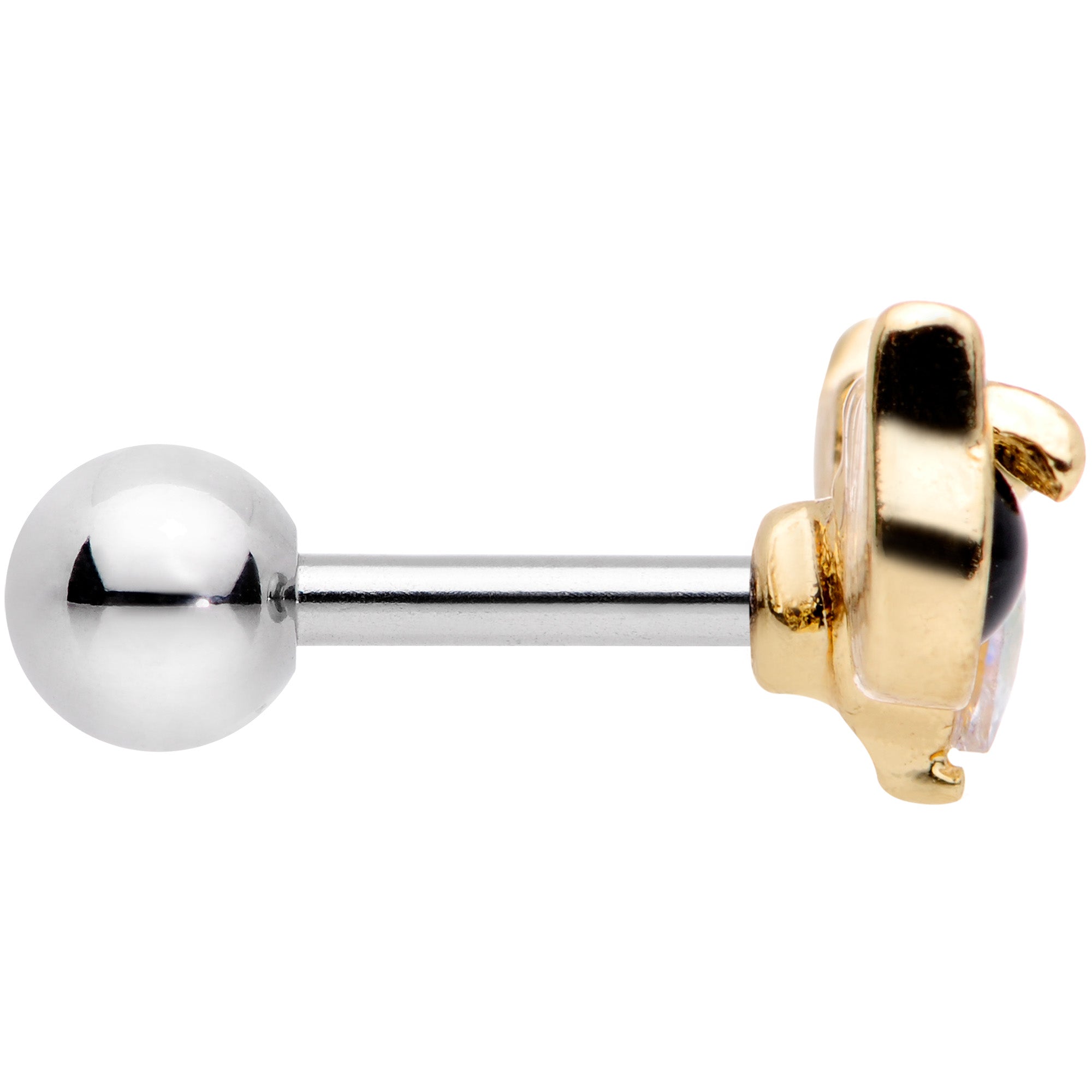 16 Gauge 1/4 Black White CZ Gem Gold Tone Kitty Luv Cartilage Tragus